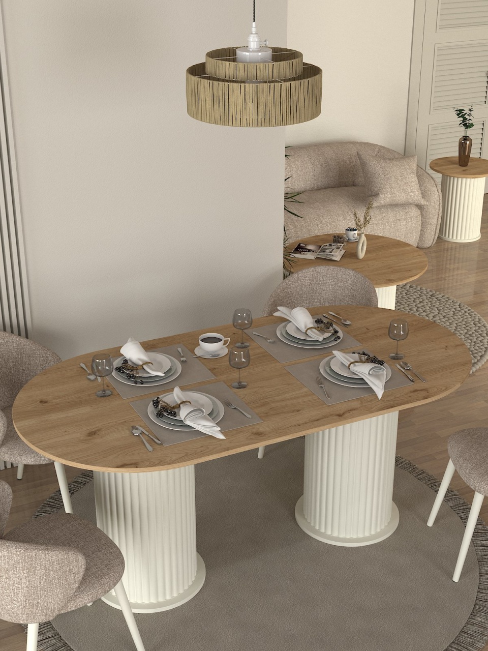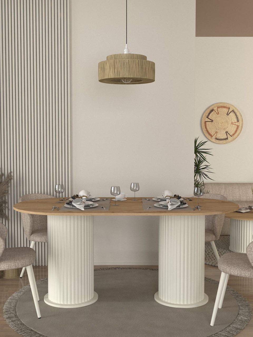 Masa dining, Compact Design, UnicUtil, Crem Masa dining din colecția Compact Design de la UnicUtil este concepută pentru a oferi un echilibru perfect între estetică și funcționalitate. Finisajul în nuanță Crem aduce un aspect elegant și contemporan, integrându-se natural în diverse stiluri de decor, de la modern la clasic. Cu 180 × 90 × 77.7 cm, oferă spațiu suficient pentru utilizare confortabilă, menținând în același timp un design compact și bine proporționat. Un element distinctiv al modelului este zona decorativă tip riflaj, realizată din plastic dur , material care permite obținerea unui finisaj estetic uniform și precis. Acest detaliu contribuie la designul modern al mesei și oferă rezistență mecanică de lungă durată , potrivită pentru utilizare frecventă și susținută. Piciorul este confecționat din plastic dur , fiind un element de design care oferă unicitate produsului. La interior, acesta este fixat pe structură din lemn, asigurând stabilitate și echilibru optim în utilizare zilnică. Construit din materiale de calitate verificată, acest masă dining este gândit pentru a rezista testului timpului. Finisajele de calitate și construcția atentă reflectă standardele UnicUtil de design accesibil și funcționalitate reală. Designul echilibrat permite integrarea armonioasă în orice cameră, oferind atât valoare estetică, cât și soluții practice de organizare și depozitare. ✦ Dimensiuni 180 × 90 × 77.7 cm – proporții optime pentru spațiul tău ✦ Finisaj Crem – aspect elegant și contemporan ✦ Design modern, potrivit pentru diverse stiluri de interior ✦ Ideal pentru masă dining – funcționalitate gândită inteligent ✦ Calitate verificată UnicUtil – raport excelent calitate-preț ✦ Structură stabilă, potrivită pentru utilizare zilnică Transformă-ți spațiul cu un design modern și funcțional! Comandă acum masa dining din colecția Compact Design de la UnicUtil și bucură-te de o casă mai organizată și mai elegantă.