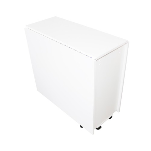 Masa plianta Mini fabricata din PAL Melaminat alba cu grosimea de 16 mm, ideala pentru utilizare ocazionala si posibilitate de strangere facila atunci cand nu se utilizeaza. Se poate depozita in spatii restranse. Masa este prevazuta cu 6 role din plastic pentru manipulare usoara in casa. Toate rolele sunt prevazute cu frana cu actionare individuala pentru a impiedica miscarea mesei atunci cand este utilizata la servirea mesei. Blatul mesei este are cant cu grosimea de 2 mm pentru o rezistenta sporita la lovituri. Masa se livreaza montata, mai putin rolele care trebuie puse acasa. Dimensiunile mesei stranse sunt: 36 cm (lungime) x 77 cm (inaltime) x 80 cm (adancime). Dimensiunile mesei extinse sunt: 170 cm (lungime) x 77 cm (inaltime) x 80 cm (adancime). !!Observatii: Livrarea acestui produs se face doar pana in fata blocului sau in fata casei!!