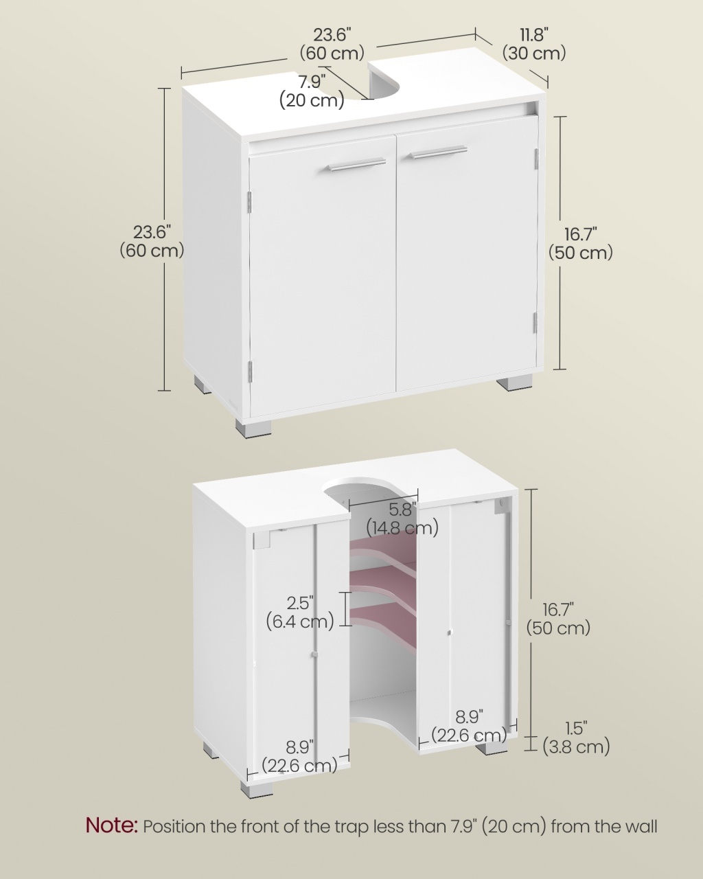 Masca lavoar Vasagle 60x30x60 cm — Organizare compactă cu stil Design modern și materiale de calitate Linia pură și nuanța caldă de alb conferă băii tale o ambianță netedă și luminoasă, astfel încât mobilierul devine atât vizibil, cât și discret în același timp. Construită din MDF și PAL melaminat , masca promite o atingere plăcută și o rezistență sporită la uzură, oferind durabilitate și estetică premium care îmbogățește decorul. Datorită finisajului ușor de curățat, acest corp de mobilier aduce un aer de rafinament fără să sacrifice funcționalitatea. Funcționalitate și organizare Cele două compartimente spațioase ascunse în spatele ușii optimizează instantaneu ordinea din baie, iar polița reglabilă pe 3 niveluri îți permite să depozitezi atât sticle înalte, cât și recipiente mici, astfel încât fiecare lucru are locul său. Produsul se potrivește pentru lavoare cu sau fără picior, însă este esențial să verifici dimensiunea decupajului pentru sifon și lățimea reală a corpului pentru a te asigura că se potrivește nevoilor tale; decupajul pentru sifon are dimensiunea de 20 x 14,8 cm. Prin organizare eficientă, această mască protejează și ascunde cosmeticele, prosoapele și produsele de curățenie, oferind spațiu , versatilitate și optimizare în fiecare zi. Montaj și întreținere Montajul este conceput pentru a fi accesibil, iar setul include toate accesoriile necesare împreună cu un kit anti-răsturnare care îmbunătățește stabilitatea și siguranța, astfel încât poți folosi mobila liniștit în preajma familiei. Curățarea se face ușor cu o cârpă moale umezită; evită substanțele abrazive pentru a păstra stratul melaminat intact și a prelungi durabilitatea finisajului. În plus, datorită construcției solide și materialelor atent alese, produsul oferă siguranță , stabilitate și întreținere simplificată. Comandă acum Adaugă masca în coș și transformă-ți baia într-un spațiu ordonat și rafinat — livrare rapidă și montaj facil. Detalii tehnice complete Dimensiuni și greutate Dimensiuni produs: 60 x 30 x 60 cm Greutate produs: 10.8 kg Dimensiuni decupaj sifon: 20 x 14.8 cm Capacitate maximă: 60 kg Materiale și caracteristici Material corp: MDF și PAL melaminat Culoare: Alb Montaj și pachet Stare asamblare: Neasamblat Conținut pachet: 1 x Masca lavoar, 1 x Kit anti-răsturnare, 1 x Accesorii de montaj, 1 x Manual de utilizare (limba engleză nu garantată) Stil și origine Stil: Modern / Minimalist Destinație recomandată: Baie Informații importante Mobilierul este proiectat pentru a se potrivi cu diverse tipuri de lavoare, cu sau fără picior; totuși, verifică înainte dimensiunile reale ale decupajului pentru sifon și lățimea mobilierului pentru a te asigura că se potrivește în spațiul disponibil. Manualul din pachet poate să nu fie disponibil în limba română, astfel încât este recomandat să studiezi instrucțiunile de asamblare cu atenție sau să soliciți asistență la montaj. În plus, folosește obligatoriu kitul anti-răsturnare pentru a mări stabilitatea și siguranța, mai ales în locuințele cu copii.