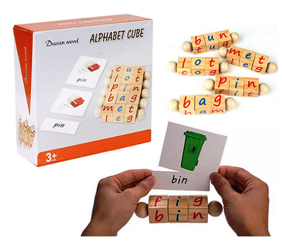 Jocul contine: 5 tije cu cate 3 cuburi litere pentru formarea cuvintelor ( lungime 13 cm)42 de imagini si cuvintedimensiune ambalaj : 15.8 x 5 x 14.5 cm Cele 3 cuburi sunt blocate pe tija , nu pot fi detasate , ci doar rotite sa formeze un cuvant.