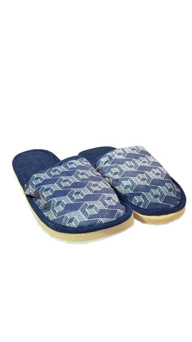 Papuci bărbați 40–45 model 93-5 – en-gros Papuci confortabili pentru bărbați, ideali pentru uz casnic. Realizați din materiale moi și rezistente, oferă confort termic și aderență bună pe orice tip de pardoseală. Caracteristici principale: Tip produs: papuci de casă pentru bărbați Model: 93-5 Mărimi disponibile: 40–45 Material exterior: textil moale și respirabil Material talpă: spumă EVA + cauciuc antiderapant Culoare: albastru închis cu model geometric alb Talpă confortabilă, ușor flexibilă Design: modern, potrivit pentru toate vârstele Utilizare: interior (acasă, hoteluri, pensiuni, spații de cazare)