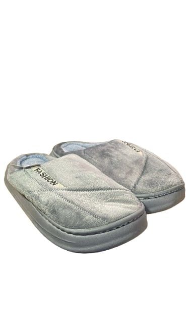 Papuci bărbați 42–45 model 93-3 – en-gros Papuci confortabili și călduroși pentru bărbați, potriviți pentru sezonul rece. Cu un design modern și materiale de calitate, oferă confort optim și protecție termică în interiorul locuinței. Caracteristici principale: Tip produs: papuci de casă pentru bărbați Model: 93-3 (Fashion) Mărimi disponibile: 42–45 Material exterior: catifea moale, plușată Interior: căptușeală din blăniță sintetică Talpă: EVA rezistentă și antiderapantă Culoare: gri deschis / gri închis Design: modern, inscripție „FASHION” Confortabil, călduros și ușor de încălțat Utilizare: interior (acasă, hoteluri, pensiuni etc.)
