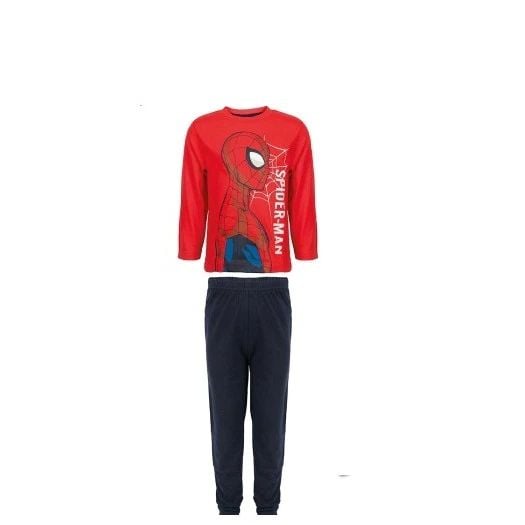 Pijama copii , cu maneca lunga, 100% bumbac, rosu negru, Spiderman , Marvel Copilul dumneavoastra poate fi alaturi de eroii sai preferati atat ziua cat si noaptea folosind pijamaua cu maneca lunga - Decolteu la baza gatului , rotund. - Pantaloni cu talie elastica pentru confort. - Material de calitate, moale si confortabil. - Compozitie : pantalon si bluza:100% bumbac Produs cu licenta oficiala Intretinere : Spalare la max. 40 gr. C. Certificat OEKO-TEX Licenta Oficiala