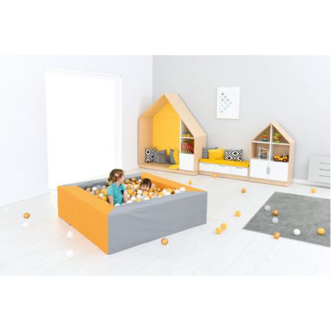 Piscina bile gri-orange 1.5 x 1.5 m inaltime 45 cm Moje Bambino Piscina cu bile este un loc de joaca adorat de copii. Piscina este realizata din spuma acoperita cu piele sintetica rezistenta. Este posibila completarea piscinei cu scari cu tobogan ( MO101828 ) - vanduta separat. Dimensiuni: 1,5 x 1,5 m x inaltime 45 cm grosimea podelei 2 mm Varsta recomandata de producator: 2 ani + Bilele se comercializeaza separat. Celelalte elemente si accesorii prezentate in imagini nu sunt incluse in pret. Acest produs nu este o jucarie! Nu lasati ambalajele jucariilor / produselor la indemana copiilor. Indepartati orice ambalaj al jucariei/produsului inainte de a da jucaria/produsul copilului. Va rugam sa supravegheati copilul in timp ce se joaca/foloseste acest produs. Pastrati instructiunile si etichetele pentru referinte viitoare. Pastrati jucaria/produsul departe de foc; feriti jucaria/produsul de temperaturi ridicate si umiditate.