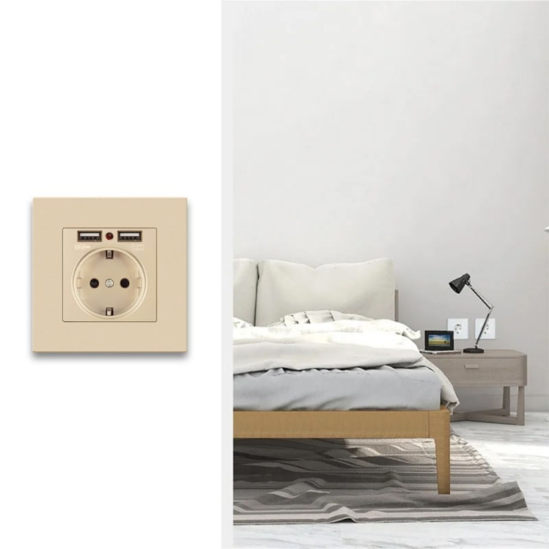 | Priza de Perete cu 2 Porturi USB Techstar® TS-PC, 110-250V, 16A, Ignifuga, 86x86mm, Auriu • infinity.ro | 34.98 RON |