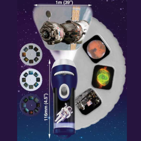 Porneste intr-o calatorie fascinanta prin univers pentru a descoperi misterele spatiului!Caracteristici:cu ajutorul a trei discuri, fiecare avand cate 8 imagini, proiectorul include un total de 24 de fotografii viu colorate, prezentand o varietate de imagini NASA si telescopul Hubblepentru a viziona imaginile, proiectati-le pe pereti sau tavan intr-o camera intunecata, iar proiectorul va crea imagini clare si precise, de pana la un metru latimecapul proiectorului este reglabil pentru a asigura o focalizare clara si detaliata a fiecarei imaginiin plus, proiectorul poate fi folosit si ca lanterna, oferind o dubla functionalitate, fiind atat util, cat si distractivcu un design compact, acesta masoara 12 cm in lungime si 4 cm in diametru, ideal pentru mainile mici si usor de transportat, facandu-l o alegere excelenta pentru explorarea interioara si pentru pasionatii de astronomie.functioneaza cu 2 baterii LR44 (incluse)produs realizat din plasticSetul include:Proiector3 discuri cu cate 8 imagini fiecare, ilustrand elemente spectaculoase din spatiuInstructiuni multilingveDimensiune ambalaj: 19.2 x 8.4 x 4.2 cmLungime proiector: 12 cmVarsta recomandata: 3 ani+Atentie! Contraindicat copiilor mai mici de 3 ani. Jucaria/produsul poate contine piese mici care se pot inghiti sau inhala, existand pericolul de sufocare. Nu lasati ambalajele jucariilor/produselor la indemana copiilor. Indepartati orice ambalaj al jucariei/produsului inainte de a oferi produsul copilului. Va rugam sa supravegheati copilul in timp ce se joaca/foloseste acest produs. Pastrati instructiunile si etichetele pentru referinte viitoare. Pastrati jucaria/produsul departe de foc, feriti jucaria/produsul de temperaturi ridicate si umiditate.Contraindicat copiilor mai mici de 3 ani. Jucaria/produsul poate contine piese mici care se pot inghiti sau inhala existand pericolul de sufocare sau nu este potrivita copiilor mai mici de 3 ani. Nu lasati ambalajele jucariilor/produselor la indemana copiilor. Indepartati orice ambalaj al jucariei/produsului inainte de a da jucaria/produsul copilului. Va rugam sa supravegheati copilul in timp ce se joaca/foloseste acest produs. Pastrati instructiunile si etichetele pentru referinte viitoare. Pastrati jucaria/produsul departe de foc; feriti jucaria/produsul de temperaturi ridicate si umiditate.
