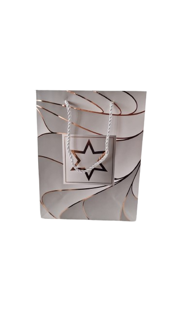 Pungă cadou elegantă 2352 – 30×41,5×11 cm – model stea, hârtie lucioasă, cu șnur alb Descriere generală: Această pungă cadou este alegerea ideală pentru ambalarea elegantă a cadourilor de dimensiuni medii și mari. Realizată din hârtie groasă, lucioasă, cu un design modern în nuanțe rafinate și accente aurii, punga impresionează prin stil și calitate. Mânerele din șnur alb întăresc aspectul premium și asigură o prindere confortabilă. Specificații tehnice: Cod produs: 2352 Dimensiuni: 30 cm (lățime) × 41,5 cm (înălțime) × 11 cm (adâncime) Material: Hârtie laminată, lucioasă, calitate superioară Design: Stea centrală, linii curbe fine, accente aurii și bronzate Mânere: Șnur alb torsadat – elegant și rezistent Utilizare: Ambalaj cadou pentru haine, parfumuri, cărți, accesorii, cosmetice etc. Avantaje și beneficii: Design elegant, modern – perfectă pentru orice ocazie specială Calitate premium – hârtie groasă, rezistentă Prindere sigură – mânere rezistente și confortabile Potrivită pentru cadouri voluminoase sau mai grele Ușor de transportat, reutilizabilă Ideală pentru: Cadouri de Crăciun, zile de naștere, onomastici Cadouri corporate sau elegante Nuntă, botez, evenimente speciale