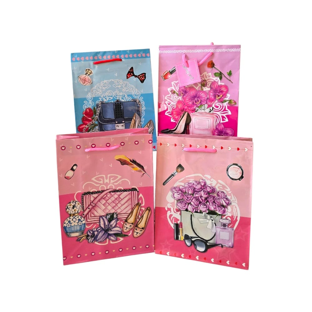 Set Pungi Cadou Femei – 12 buc., 4 modele glam, 24x18x8 cm Un set chic de pungi cadou pentru femei moderne, ilustrând accesorii precum pantofi, genți, flori, machiaj și parfumuri. Culorile feminine și imprimeurile delicate adaugă un plus de stil oricărui dar oferit. ???? Set compus din: 12 pungi cadou (4 modele diferite) ???? Culori și modele: roz pal, roz intens, albastru și nuanțe pastel, cu imprimeuri feminine – flori, pantofi, genți, cosmetice ???? Dimensiuni: 24 x 18 x 8 cm ???? Material: hârtie lucioasă, mâner textil colorat ???? Valoare adăugată pentru revânzători: ✔️ Designuri atractive potrivite pentru cadouri feminine ✔️ Ușor de integrat în magazine de accesorii, cosmetice sau bijuterii ✔️ Set variat care acoperă gusturi diverse ⚠️ Atenționare: Conține șnururi – nerecomandat copiilor sub 3 ani din cauza riscului de strangulare. ???? Disclaimer: Culorile pot varia ușor în funcție de lumina ambientală sau de ecran. ????️ Fabricat în: PRC