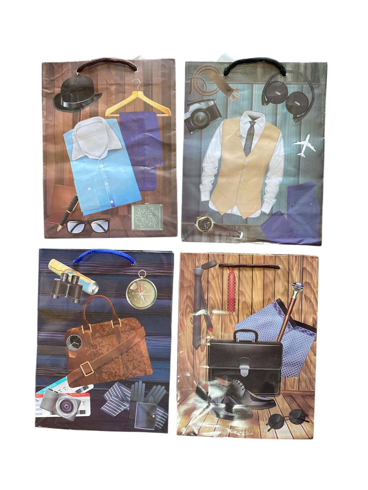 Pungi de cadou din hartie cerata MODEL BARBATESC, diverse modele, dimensiuni: 23 x 17 cm, 12 buc/set