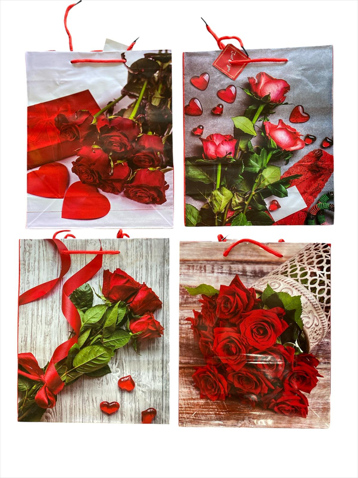 Pungi de cadou din hartie cerata MODEL FLORI, diverse modele, dimensiuni: 31 x 25 cm, 12 buc/set