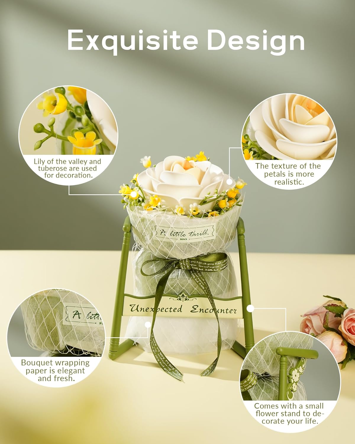 Camelia alba este un simbol atemporal al frumusetii si elegantei, care lumineaza orice spatiu in care este expus. Aceasta capodopera florala se bazeaza pe un design de inspiratie franceza, cu petale moi, stratificate, tulpini usor curbate, completate de lacramioare si iasomie inflorita imprastiate in jurul florii. De asemenea, suportul este minunat decorat cu ramuri si modele florale care adauga rafinament aranjamentului. Asamblarea acestui puzzle este relaxanta, placuta si iti ofera momente care iti calmeaza sufletul.Camellia alba este un kit excelent pentru incepatorii de puzzle-uri 3D. Va dura doar aproximativ o jumatate de ora pentru a construi acest model frumos, apreciat de toata lumea.