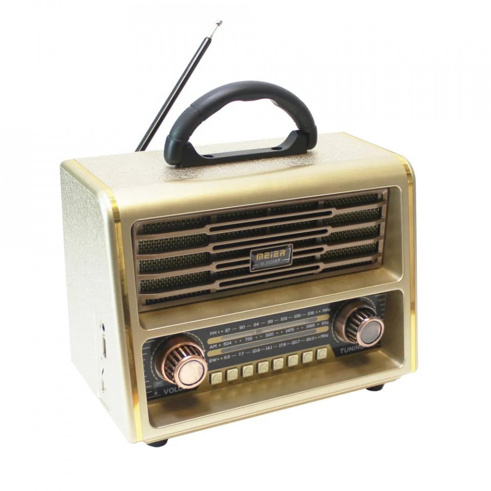 Receptorul radio tri-band Meier M-2028BT are un design original al carcasei vintage și o calitate excelentă a sunetului. Pe lângă recepția posturilor de radio, dispozitivul poate fi folosit ca difuzor portabil pentru redarea fișierelor MP3 de pe dispozitive externe, unități flash USB sau carduri de memorie microSD (TF). Pentru interfața cu surse de fișiere de sunet, Meier M-2028BT are o intrare AUX standard și un modul Bluetooth încorporat. Funcționarea autonomă a receptorului se realizează dintr-o baterie detașabilă 18650, care poate fi încărcată de la orice sursă de alimentare USB prin conectorul Type-C situat în partea stângă a carcasei dispozitivului. De asemenea, este posibil să funcționeze cu două baterii R20 (D, LR20, UM-1) sau pe o rețea de 220 V folosind un adaptor extern DC5V (achiziționat separat). Particularitati: Radio analog cu MP3 player Gama tunerului: AM/FM/SW Antenă telescopică retractabilă Suport media: USB / MicroSD de până la 32 GB Suport Bluetooth AUX IN pentru conectarea dispozitivelor externe. Mâner de transport Baterie înlocuibilă 1200mA 18650 Intrare de tip C: DC 5V Cablu de incarcare USB inclus Dimensiuni: 230 x 120 x 190 mm Echipament: Receptor radio Meier M-2028BT Cablu de încărcare tip C