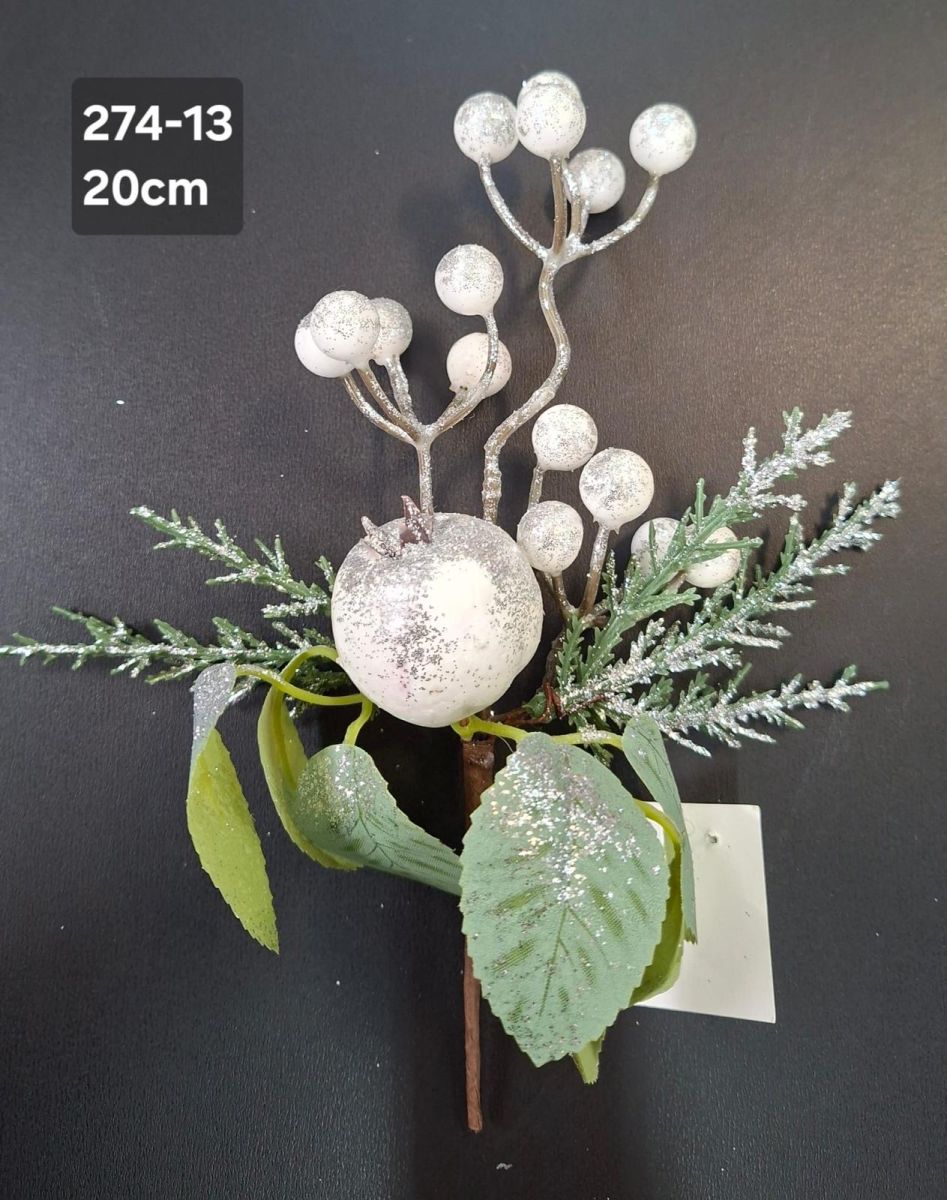 Ramura brad artificial Engros, decor Craciun, decorata, 25 cm, 274-13