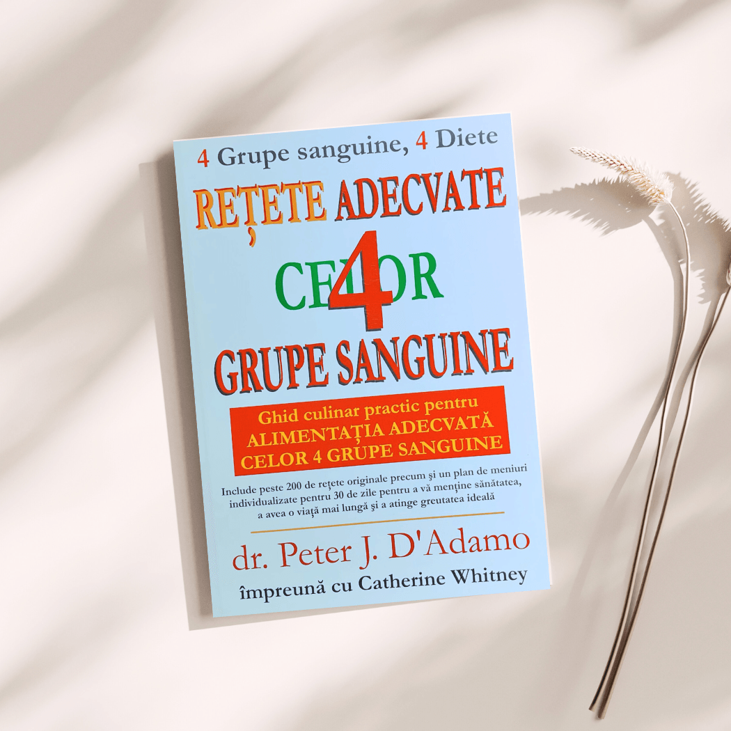 Retete Adecvate Celor 4 Grupe Sanguine: Ghidul Complet pentru o Alimentatie Personalizata si Sanatoasa - Dr. Peter J. DAdamo & Catherine WhitneyGhid Culinar cu peste 200 de Retete Originale precum si un Plan de Meniuri Individualizate!Mananca inteligent, traieste sanatos!Stiai ca dieta potrivita pentru tine depinde de grupa ta sanguina? Fiecare organism reactioneaza diferit la alimente, iar ceea ce este benefic pentru o persoana poate sa nu fie ideal pentru alta.Retete adecvate celor 4 grupe sanguine iti ofera un ghid culinar complet, bazat pe principiile nutritiei personalizate, pentru a-ti optimiza sanatatea, digestia si nivelul de energie!Cu ajutorul renumitului Dr. Peter J. DAdamo si al unei echipe de bucatari experimentati, aceasta carte iti arata in cele aproape 400 de pagini, cum sa iti construiesti o alimentatie echilibrata si gustoasa, adaptata perfect nevoilor organismului tau.Mananci sanatos, dar nu vezi rezultate? Poate mananci gresit pentru corpul tau!Ai incercat diete, ai eliminat alimente „nesanatoase” si totusi te simti obosit, ai probleme digestive sau nu reusesti sa iti mentii greutatea optima?Iata Problema:Ceea ce functioneaza pentru o persoana poate fi complet gresit pentru alta. De ce? Pentru ca organismul nostru reactioneaza diferit la alimente in functie de grupa sanguina. Ceea ce este benefic pentru cineva cu grupa 0 poate fi daunator pentru cineva cu grupa A.Iata Frustrarea:Poate ai urmat sfaturi generale de nutritie, dar nu ai obtinut rezultatele dorite. Te simti lipsit de energie, ai probleme digestive sau retii apa fara sa intelegi de ce. Mai mult, gasirea unor retete potrivite pentru intreaga familie devine o provocare!Iata Solutia:Cartea Retete Adecvate Celor 4 Grupe Sanguine este ghidul complet care iti ofera planuri alimentare personalizate, astfel incat sa iti hranesti corpul exact cu ceea ce are nevoie.Cum te va Ajuta aceasta Carte?Peste 200 de retete originale, delicioase si usor de preparat, concepute special pentru fiecare grupa sanguinaPlanuri de meniuri pentru 30 de zile, pentru a-ti integra dieta in rutina zilnica fara efortListe de alimente recomandate si de evitat, astfel incat sa stii exact ce sa alegi la cumparaturiDiagrame intuitive, care iti arata cum sa gatesti pentru mai multe grupe sanguine in cadrul aceleiasi familiiSfaturi practice pentru o alimentatie sanatoasa, inclusiv solutii rapide pentru mesele din mersAcest ghid nu este doar o colectie de retete, ci un instrument esential pentru oricine doreste sa isi imbunatateasca stilul de viata, sa isi mentina greutatea optima si sa se bucure de un echilibru perfect intre sanatate si placerea de a manca.Cum Functioneaza Alimentatia Bazata pe Grupele Sanguine?Grupa 0 – Are nevoie de un aport ridicat de proteine, in special carne, si un consum redus de carbohidratiGrupa A – Se simte cel mai bine adoptand un regim vegetarian, bogat in legume si cereale integraleGrupa B – Se bucura de o dieta echilibrata, incluzand lactate, carne slaba si legume variateGrupa AB – Combina avantajele grupelor A si B, dar trebuie sa acorde atentie anumitor intoleranteTransforma-ti alimentatia intr-o experienta personalizata si incepe chiar acum drumul catre o viata mai sanatoasa!Rezultatul? Vei avea mai multa energie, o digestie mai buna si vei simti cum corpul tau functioneaza in armonie cu alimentatia corecta!Daca vrei sa scapi de oboseala, sa iti imbunatatesti digestia si sa ai un stil de viata echilibrat, aceasta carte este exact ceea ce ai nevoie.Incepe chiar acum sa mananci ceea ce ti se potriveste cu adevarat!Despre autor: Dr. Peter J. DAdamoDr. Peter J. DAdamo este un medic naturopat si cercetator renumit la nivel international, cunoscut pentru dezvoltarea si popularizarea conceptului de dieta in functie de grupa sanguina in anul 1996.In cadrul cercetarilor sale, Dr. DAdamo a propus ideea ca fiecare grupa sanguina are alimente optime care corespund cu evolutia si adaptarile specifice stramosilor sai, iar prin consumarea alimentelor potrivite pentru propria grupa sanguina, fiecare individ isi poate imbunatati sanatatea si preveni anumite boli.Aceasta teorie a fost detaliata in bestseller-ul sau „Eat Right 4 Your Type”, care a schimbat perspectiva a milioane de oameni asupra nutritiei si sanatatii personalizate.Cu o vasta experienta in medicina integrativa si naturopatie, Dr. DAdamo a continuat sa dezvolte programe inovatoare, „GenoTipul si dieta, extinzand principiile sale pentru a include factori genetici si de mediu, oferind solutii personalizate pentru sanatate si bunastare.