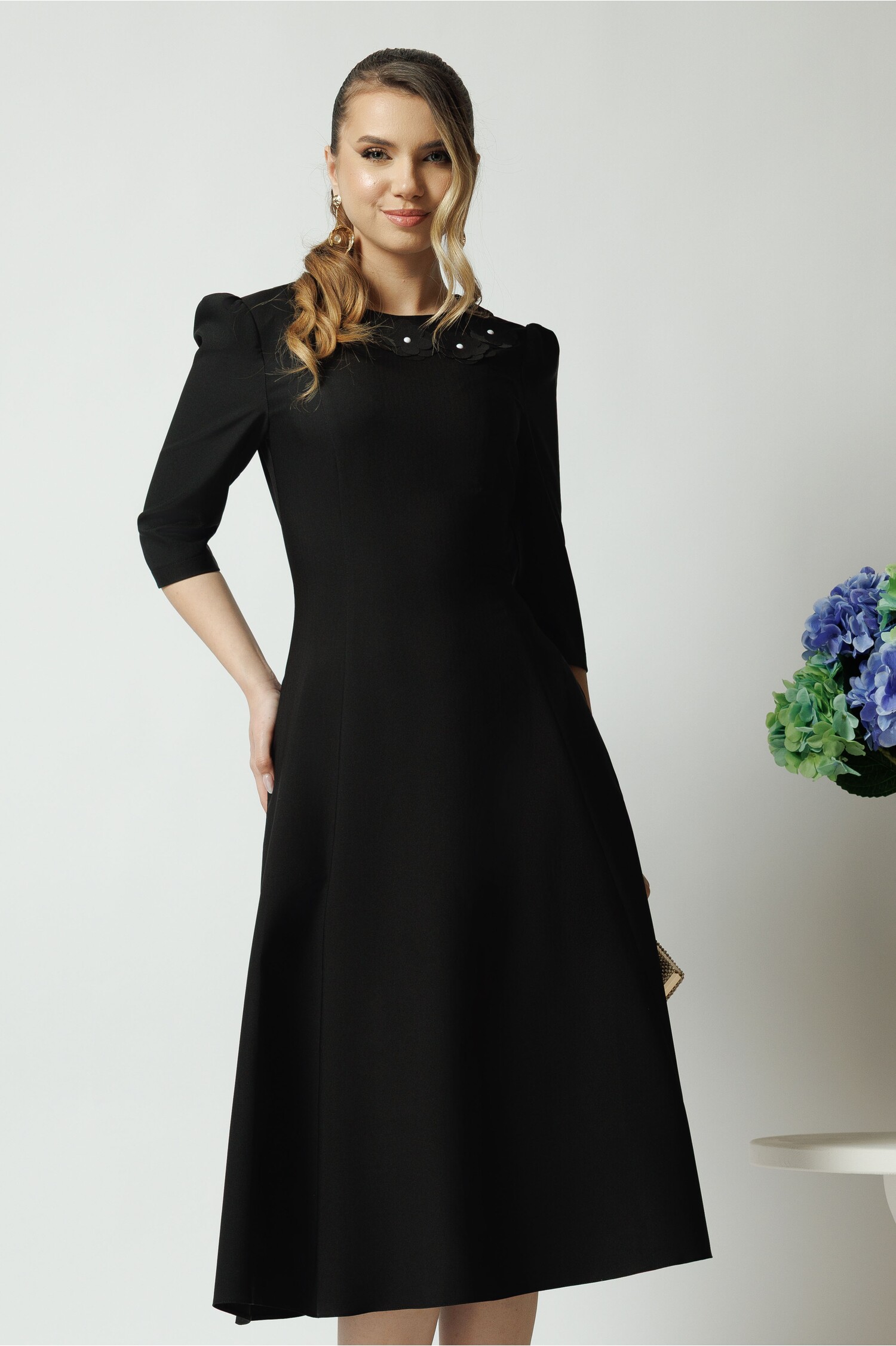 Rochie office din stofa cu flori nedetasabile la bust. Are decolteu rotund, maneci trei sferturi, croi clos si buzunare functionale. Rochie office Decolteu rotund Maneci trei sferturi Croi clos Buzunare functionale Fara captuseala Se inchide cu fermoar la spate Material: Stofa Compozitie: 88% Poliester, 12% Spandex Fotomodelul poartă mărimea: S | Înălțime: 173 cm Fiecare produs este măsurat individual. Te rugăm să consulți ghidul de mărimi pentru alegerea corectă a mărimii!