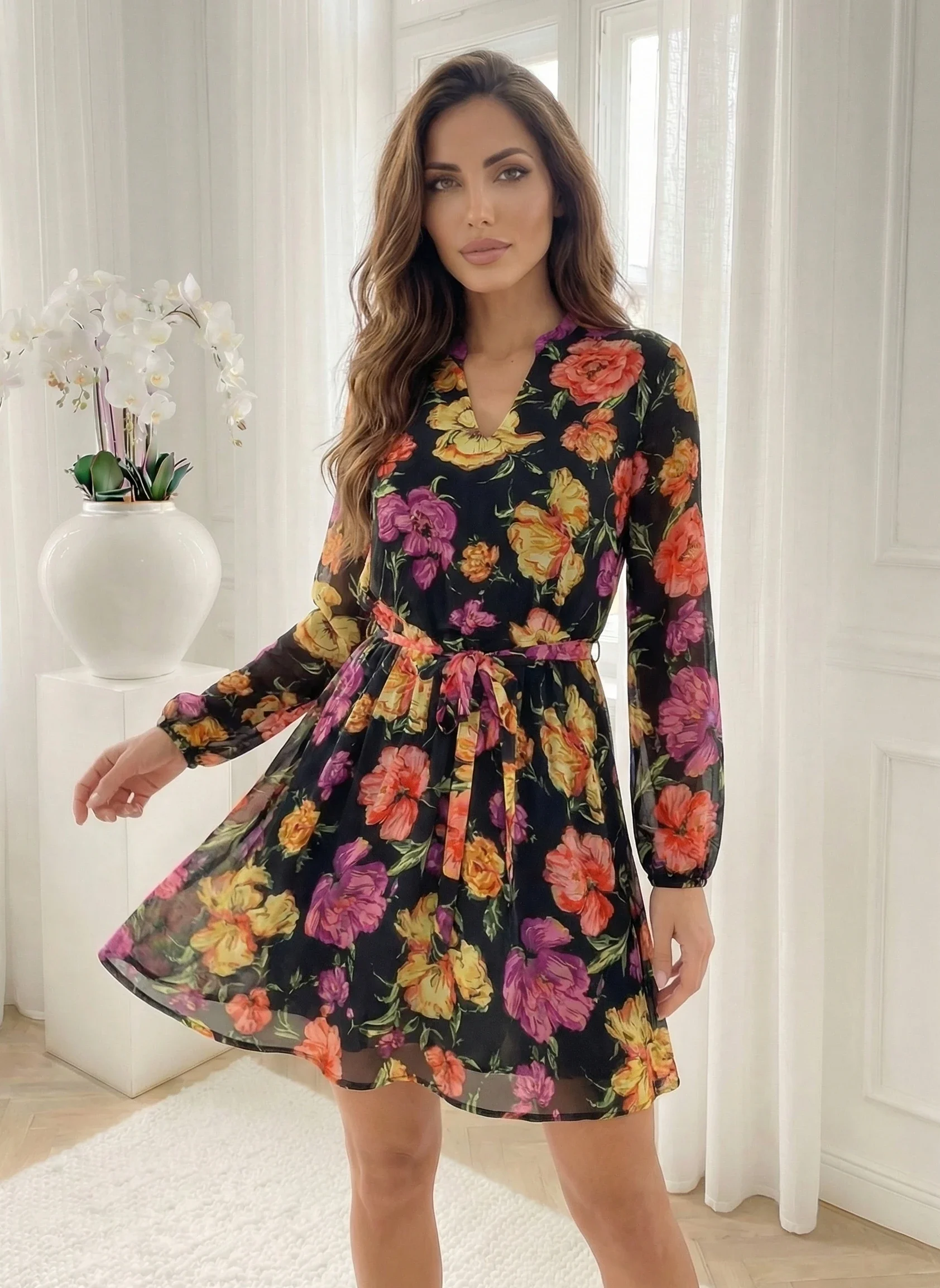 Rochie eleganta roz cu decolteu petrecut in V, material lucios si cordon in talie cu funda la spate Compozitie: 95% poliester, 5% elastan decolteu petrecut in V cordon in talie funda la spate inchidere cu fermoar croi in A material