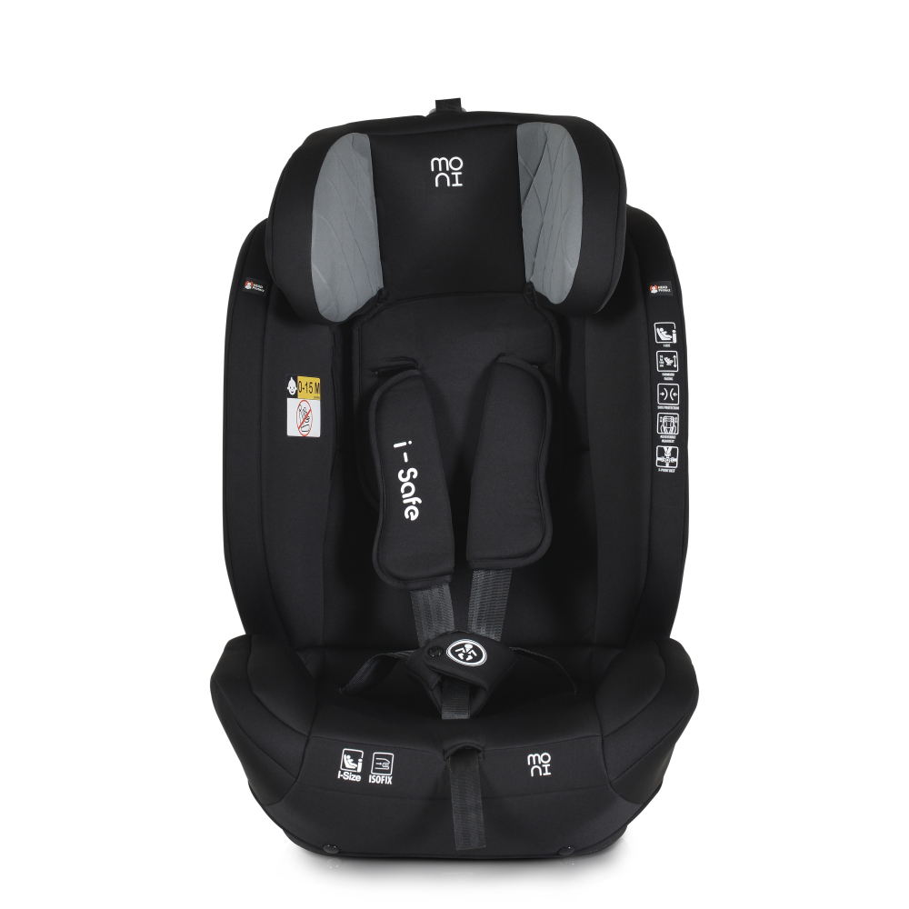 Scaun auto cu isofix Moni I-Safe Grey 76-150 cm,certificare i-size R129,centura ancorare top tether,tetiera reglabila 13 pozitii,husa detasabila,saltea reductor,pernuta gat si jucarie plus incluse