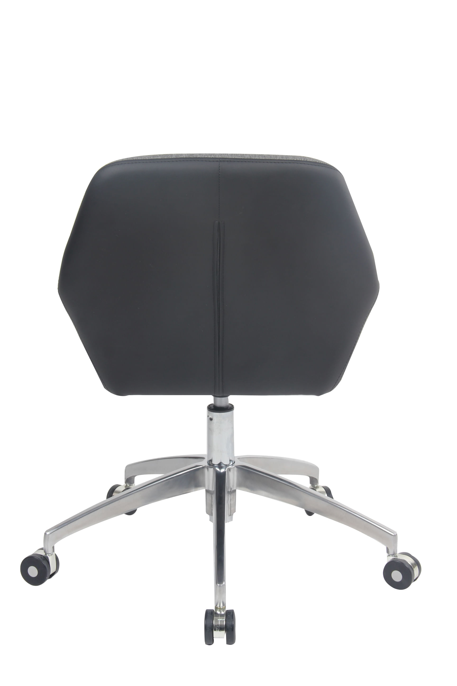 Aspectul retro al scaunul directorial US63 il recomanda atat pentru birouri, cat si pentru sali de asteptare. Sezutul, spatarul si cotierele scaunului ofera confort si relaxare, prin pernele moi care sunt tapitate cu material textil, iar in partea exterioara tapiteria este din piele ecologica. Baza cu 5 brate este fabricata din aluminiu, iar cele 5 roti ajuta la mobilitatea scaunului, combinatia de PP si aluminiu ofera o miscare lina si un aspect elegant.Scaunul directorial US63 este prevazut cu cilindru pneumatic de ridicare/coborare si rotire 360 de grade. Dimensiunile totale ale scaunului sunt 55 cm latime, 57 cm adancime si 91 cm inaltime. Inaltimea scaunului poate fi ajustata intre 97 si 91 cm. Greutatea maxim suportata de scaunul directorial tip fotoliu US63 este de 100 kg.Intretinere: a se curata cu o carpa usor umezita intr-o solutie de apa calduta cu sapun (50% apa, 50% sapun PH neutru), apoi stergeti cu o carpa uscata.Produsul se livreaza demontat si este insotit de instructiuni si accesorii pentru asamblare.