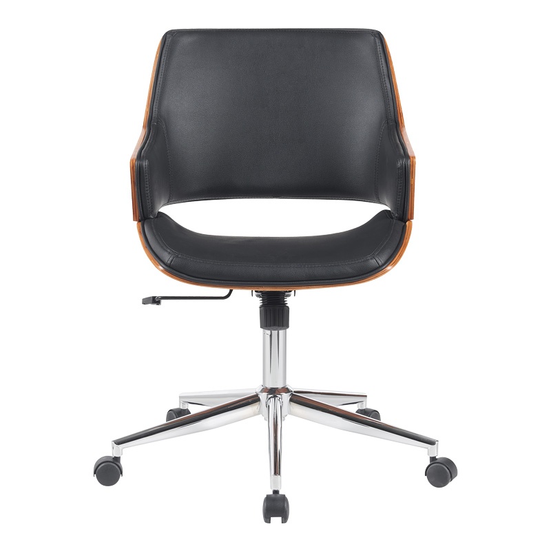 Scaun de birou Setulo, negru, 53x61x79-89 cm Transformă-ți spațiul de lucru cu scaunul de birou Setulo, un model elegant și funcțional care îmbină confortul cu stilul rafinat. Conceput ergonomic pentru a oferi suport în timpul orelor lungi de muncă, acest scaun adaugă o notă de lux și profesionalism biroului tău. Caracteristici principale Scaunul de birou Setulo este ideal pentru cei care apreciază atât designul modern, cât și funcționalitatea. Cu detalii din placaj de înaltă calitate și un finisaj de nuc, acest scaun se remarcă prin durabilitatea și estetica sa sofisticată. Specificații tehnice Materiale: placaj de calitate superioară cu finisaj de nuc și piele PU neagră rezistentă Culoare: combinație elegantă de negru și nuc Cadru metalic robust: bază metalică cu cinci roți pentru o mișcare ușoară și rotație în orice direcție Dimensiuni: Lungime: 53 cm Lățime: 61 cm Înălțime ajustabilă: 79-89 cm Utilizare și întreținere Scaunul este livrat neasamblat, în ambalajul original al fabricii, și include un ghid detaliat de asamblare. Este recomandat să urmezi instrucțiunile pentru a asigura o montare corectă. Culoarea produsului poate varia ușor față de reprezentarea fotografică de pe ecranul tău. Scaunul de birou Setulo este alegerea perfectă pentru un birou modern, oferind atât confort, cât și un design deosebit, adaptabil oricărui spațiu de lucru.