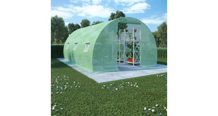 Aceasta sera spatioasa poate gazdui un numar semnificativ de fructe, legume si plante. Aceasta sera de plante este o solutie minunata pentru a va proteja plantele de vant, ploaie, razele soarelui si pasari daunatoare. Sera este fabricata din tesatura de plasa din polietilena de 140 g/m², care este cu 25% mai grea decat tesatura standard a multor competitori. Prin urmare, previne mai bine impactul factorilor de mediu. Aceasta sera de plante are un cadru din otel galvanizat, robust si rezistent la rugina, pentru stabilitate suplimentara. Aceasta sera este prevazuta cu sase ferestre cu dimensiuni de 38 x 38 cm pentru ventilatie si, de asemenea, cu o usa cu dimensiuni de 100 x 185 cm. Sera este usor de asamblat. Recomandam adaugarea fundatiei pentru un plus de robustete. Retineti ca acoperisul serei noastre nu poate rezista la ninsori abundente. Specificatii Culoare: Verde Material: Plasa de PE (polietilena) si otel galvanizat Densitate tesatura de plasa din polietilena: 140 g/m² Dimensiuni: 450 x 300 x 200 cm (l x ad. x i) Cu 6 ferestre laterale si 1 usa Dimensiuni fereastra: 38 x 38 cm Dimensiuni usa: 100 x 185 cm (l x i)
