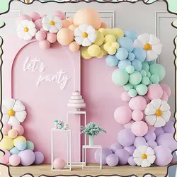 Set 139 baloane ghirlanda engros -Setul conține: - 7 flori albe decor de 18 inci -2 baloane de 18 inci -crem , mov - 80 balaone de 10 inci -20 roz, 20 mov, 10 pudra, 10 galben, 10 vernil, 10 albastru - 50 baloane de 5 inci -10 roz, 10 mov, 5 pudra, 5 galben, 10 vernil, 10 albastru + puncte adezive + banda lant 5m