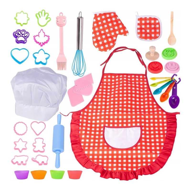 Set 39 accesorii bucatarie copii, accesorii cofetarie, sucitor, forme prajitura, sort, manusa si boneta Setul de 39 de accesorii este perfect pentru micii pasionati de gatit si cofetarie, oferindu-le tot ce au nevoie pentru a se juca si a invata sa pregateasca deserturi delicioase. Acest set cuprinzator include diverse accesorii de cofetarie, precum un sucitor, multiple forme pentru prajituri, tel de amestecare, spatula, linguri, ustensile de decorare, dar si echipamente, cum ar fi sortul, manusa si boneta de bucatar, pentru o experienta autentica de mini chef. Formele pentru prajituri, de diferite forme si dimensiuni, ii ajuta pe cei mici sa isi exploreze creativitatea in bucatarie si sa invete despre gatit intr-un mod interactiv. Sortul, manusa si boneta completeaza experienta de joc, oferind un aspect autentic si protectie impotriva murdaririi, astfel incat copiii sa se simta ca adevarati bucatari. Setul de 39 de accesorii de bucatarie si cofetarie incurajeaza jocurile de rol si dezvoltarea abilitatilor motorii fine, stimuland totodata creativitatea si imaginatia. Transforma timpul petrecut in bucatarie intr-o experienta distractiva si educativa pentru copii cu acest set complet si atragator! Specificatii: - accesorii bucatarie si cofetarie; - varsta recomandata 3 ani+; - set 39 piese; - include forme decor prajitura, spatule, tel, sucitor, linguri, accesorii decorare, boneta, manusa, sort, protectie vase, etc; - material plastic, lemn, textil; - multicolor. Avertizare! Produsul este nou si comercializat in ambalajul original al producatorului. Imaginile de pe site au caracter informativ. Nuanta, tonul si intensitatea culorii pot varia in functie de monitor. Continutul sau culorile specificate pot varia fata de fotografiile prezentate pe ambalaj. Ambalajul nu este o jucarie, acesta trebuie indepartat, recuperat si aruncat de catre un adult inainte de a se da spre utilizare copilului. Produsul poate fi ambalat in punga si necesita indepartarea ei din preajma copilului existand pericolul de sufocare. Se recomanda utilizarea produsului sub supravegherea unui adult. Produsul poate contine piese mici care se pot inghiti sau inhala de cei mici, existand pericolul de sufocare. In cazul inghitirii unor astfel de piese, consultati de urgenta un specialist. Pastrati piesele mici deformate, rupte sau dezasamblate departe de copii. Pastrati etichetele pentru referinte viitoare. Pastrati produsul departe de foc si nu il expuneti temperaturilor ridicate si umiditatii. Materialul din care este confectionat produsul este nedaunator sanatatii si nontoxic. Produs testat conform standardelor internationale. Nerecomandat copiilor cu varsta mai mica de 3 ani! Nota! Produsul nu functioneaza cu baterii.