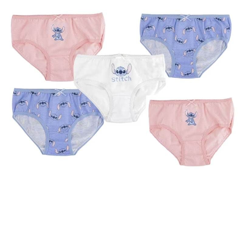 Set 5 perechi chiloti pentru copii, 100% bumbac, multicolor, Stitch CARACTERISTICI GENERALE Tip produs: Chiloti Numar piese: 5 Imprimeu: Logo Culoare: Multicolor Material: Bumbac Poveste Personaj: Disney Detalii: 100 % Bumbac Linie Brand: Disney
