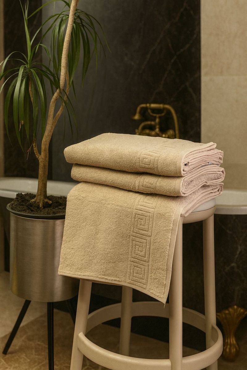 Set 5 prosoape de baie 70x140 cm, cu o densitate de 500 g/mp, model grecesc, 100% bumbac . Instrucțiuni de intreținere: - se spală pana la 60°C automat pentru rezistența indelungată . - la produsele colorate nu se folosesc inălbitori chimici. - se recomandă ca produsul să fie spalat inainte de prima utilizare pentru o igienă corectă. Productie Turcia . Datorita luminii la care sunt expuse produsele în timpul fotografierii pot aparea mici diferite de nuanta .
