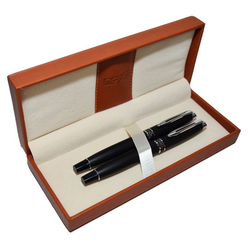 Set cadou stilou si pix, penita din otel inoxidabil, etui piele ecologica maro Setul include un pix si un stilou cu design simplu si elegant. Corpul instrumentelor de scris este confectionat din metal si plastic de calitate. Acestea sunt prevazute cu clips metalic si zona de grip. Stiloul are penita din otel inoxidabil cu varf de iridiu si convertor. Pixul este echipat cu mina ceramica ce poate fi schimbata dupa epuizare. Acest set poate fi cadoul perfect prin eleganta si utilitate. Caracteristici: - stilou cu penita din otel inoxidabil cu varf de iridiu; - stiloul este prevazut cu convertor pentru incarcare cu cerneala; - pixul are o mina ceramica usor de inlocuit dupa epuizare; - ambele instrumente de scris au corpul din material plastic si metal; - clips metalic si zona de grip; - grosime varf 0.7 mm; - culoare etui maro; - dimensiunea casetei-etui este 19.5x8x4 cm. Setul este disponibil in mai multe variante de culoare ale instrumentelor (rosu, albastru, negru). Se trimite in mod aleatoriu in functie de disponibilitatea culorii!