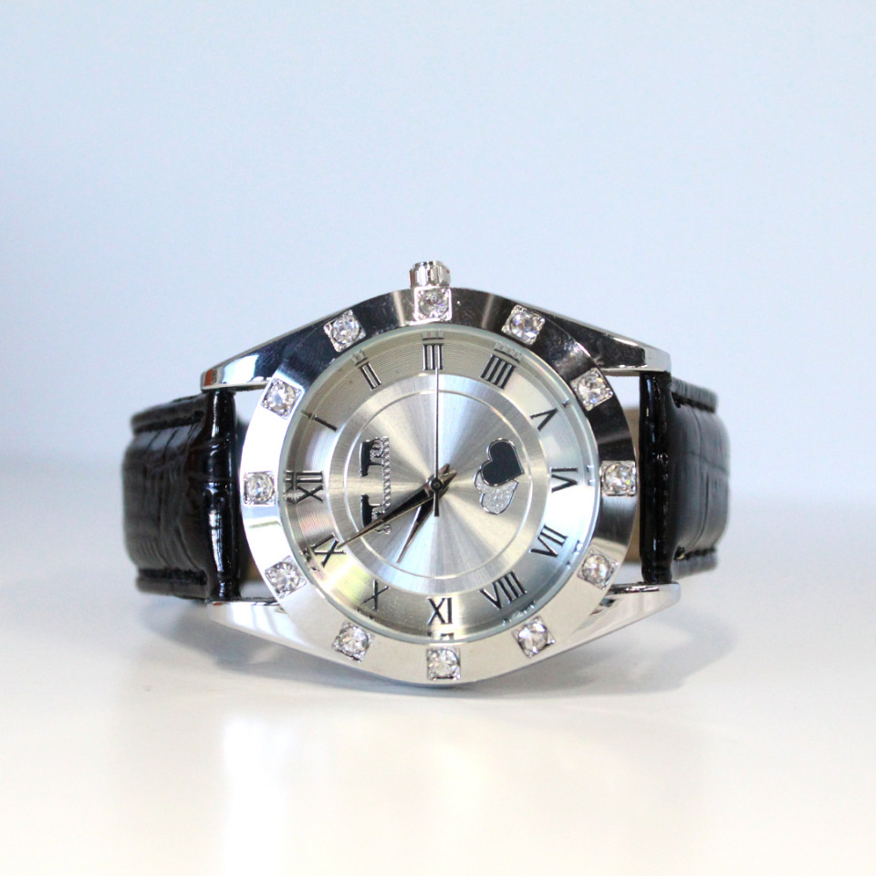 Set ceas elegant Waterproof Matteo Ferari, curea din piele ecologica si bratara asortata, Hearts, Negru/Argintiu Un ceas ideal pentru toate femeile care vor sa fie sofisticate. Eleganța oțelului inoxidabil din care este fabricat ceasul, coronita decorata cu cristale de zirconiu si cadranul decorat cu doua inimioare indragostite , vă vor incanta. Ceasul Hearts vine insotit de o bratara din inox cu cristale hipnotizante ce definitiveaza un set versatil si stilat, intr-o superba cutie cadou. Caracteristici ceas: Brand: Matteo Ferari Tip display: Analog Carcasa: Otel inoxidabil, design rotund, argintie si decorata cu cristale/zirconiu Cadran : Decorat cu doua inimi, inscriptionat Matteo Ferari Curea: piele ecologica, antialergica, cu imprimeu embosat Sticla: Rezistenta la zgarieturi Rezistent la apa: Waterproof 3 atm Inchidere curea: Catarama clasica Mecanism: quartz Markeri: Cifre romane Stil: casual - elegant Lungime totala: 25 mm Latime curea: 20 mm Grosime carcasa: 2 mm Dimensiune carcasa: 37 mm Diametru cadran: 29 mm