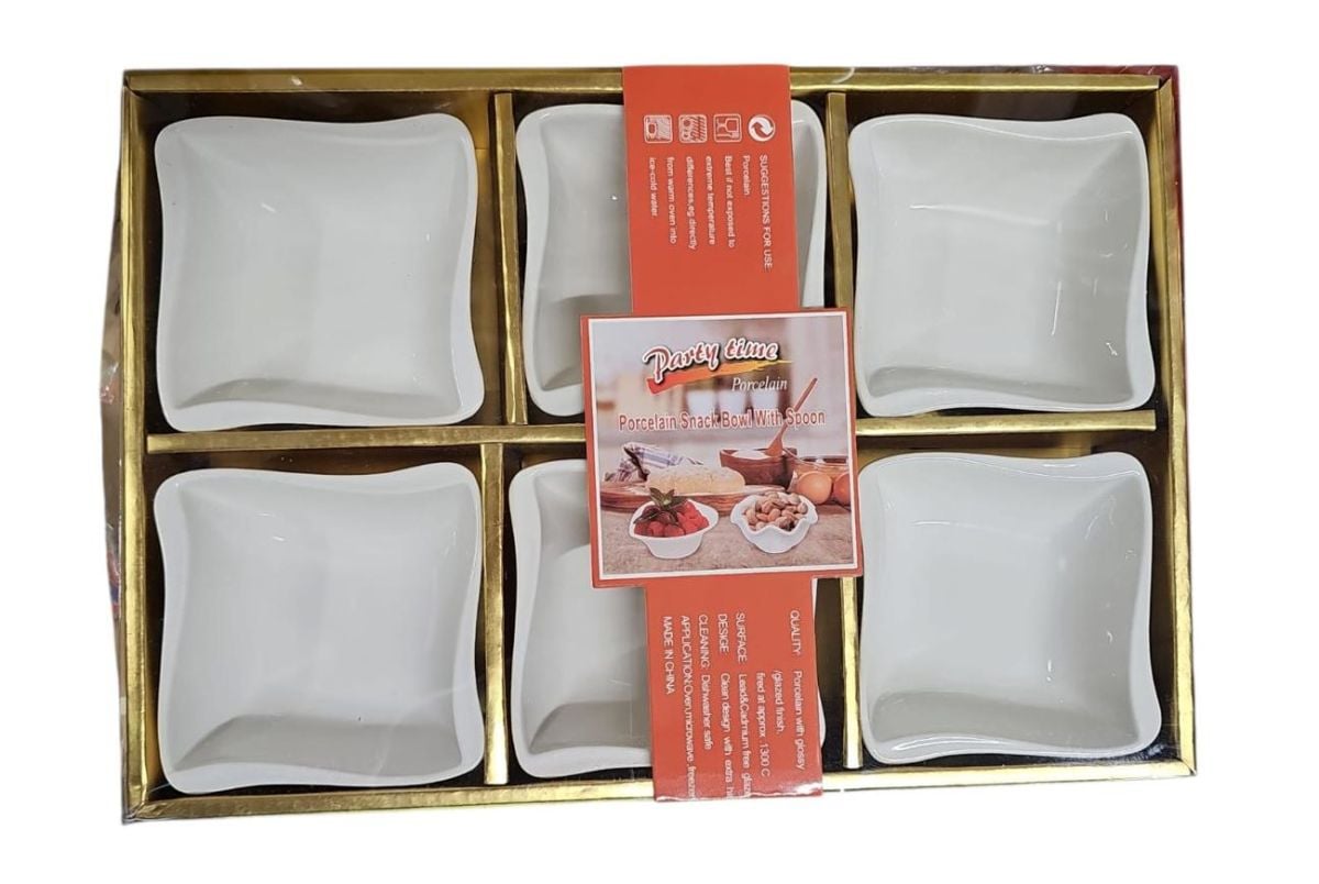 Adaugă un plus de eleganță servirii cu acest set de 6 sosiere ceramice albe de calitate premium. Fiecare bol de 6 x 6 cm este realizat din porțelan rezistent, ideal pentru restaurante, cafenele, catering sau uz casnic. Designul minimalist și finisajul lucios se integrează perfect în orice decor. Caracteristici produs: Set compus din 6 boluri pătrate din porțelan alb Dimensiune bol: 6 cm x 6 cm Perfecte pentru sosuri, condimente, aperitive, deserturi, degustări Potrivite pentru mașina de spălat vase și cuptorul cu microunde Design modern, ideal pentru prezentări gastronomice elegante Utilizare recomandată: Restaurante, baruri, hoteluri, evenimente și catering Servirea sosurilor, dipurilor, gustărilor sau condimentelor Avantaje: Ușor de curățat și întreținut Economie de spațiu datorită dimensiunii compacte Aspect estetic premium pentru mese festive sau prezentări culinare