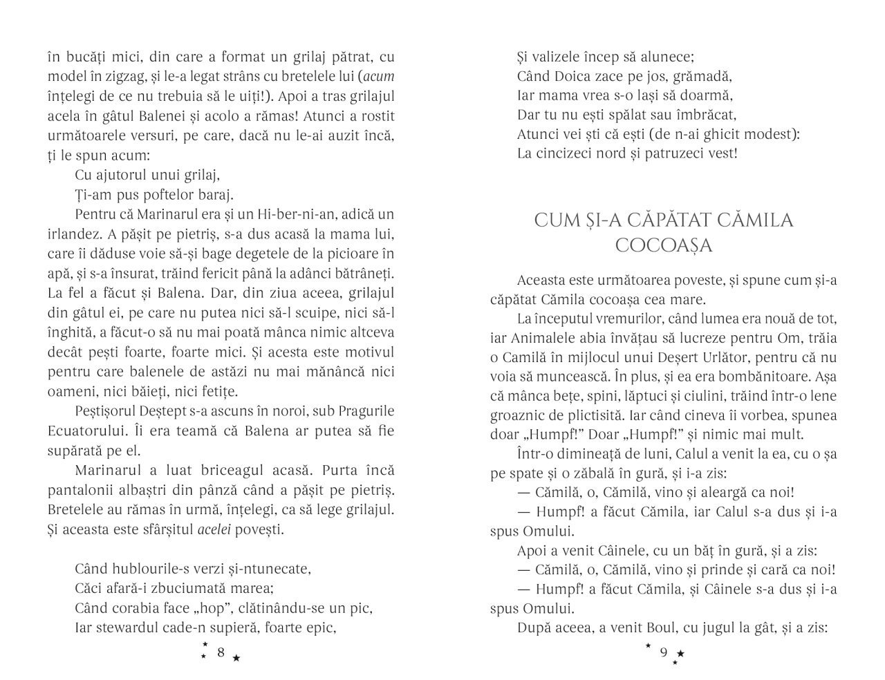 Simple povestiri este o colecție de povești clasice în care animalele devin personaje principale și explică, cu umor și imaginație, cum au ajuns să fie așa cum le cunoaștem astăzi. Fiecare poveste este scurtă, ușor de urmărit și construită într-un ritm plăcut, potrivit pentru lectura de seară sau pentru copiii care citesc singuri. Limbajul este clar, accesibil, iar întâmplările sunt pline de situații amuzante și personaje memorabile. Cartea îi ajută pe copii să își dezvolte vocabularul, atenția și plăcerea de a citi, oferindu-le în același timp ocazia de a descoperi povești clasice care au fost îndrăgite de generații întregi. Un volum potrivit pentru primele lecturi independente, dar și pentru momentele în care adulții citesc copiilor cu voce tare. Caracteristici: Autor: Rudyard Kipling Mărimi: Necartonată Pagini: 128 Vârstă: 7 – 10 ani Copertă: Necartonată