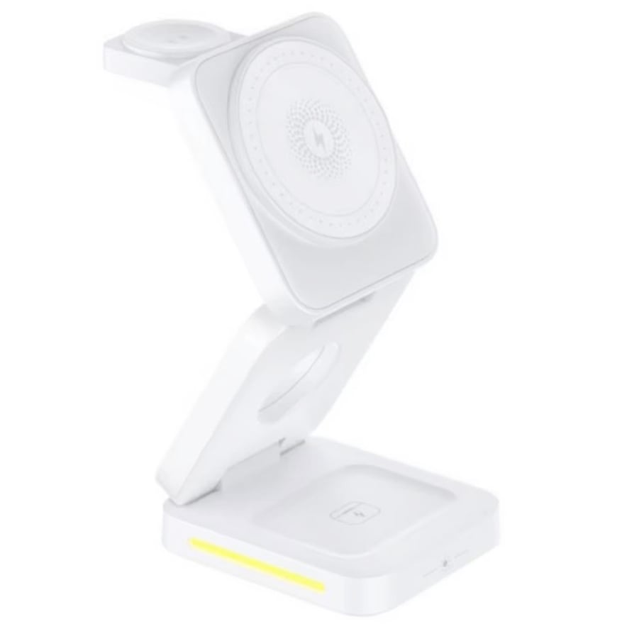 Statie Wireless 3 in 1 Pliabila, Incarcare rapida 15W, pentru Telefon, Casti si Ceas, Model HT-552, Suport Magnetic, Alb Engros