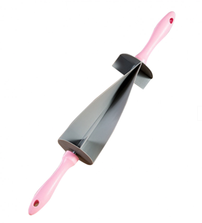 Sucitor pentru aluat de croissant Sucitorul cu forma speciala va ajuta sa pregatiti croissante delicioase. Pur si simplu rulati sucitorul pe aluat, iar apoi intoarceti-l in sensul opus . Acesta va taia aluatul in forma speciala pentru croisante. Facaletul va taia aluatul in triunghiuri cu doua laturi lungi de 18 cm si baza de 10 cm . Asezati sucitorul pe aluat si rulati-l incet pentru a obtine triunghiul din aluat. Lugimea facaletului fara manere – 18cm Material – plastic pentru uz alimentar Diametru Aproximativ 10 cm