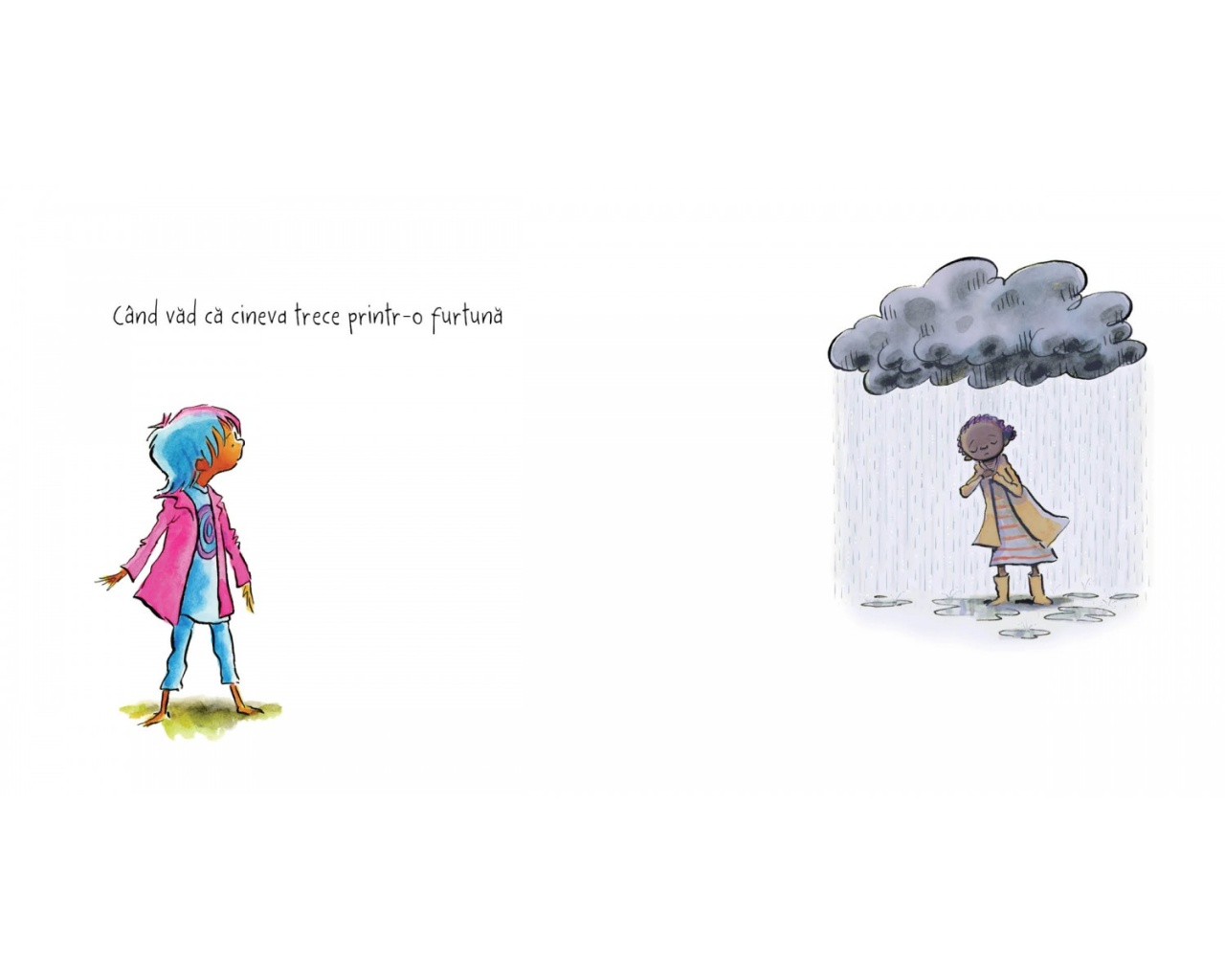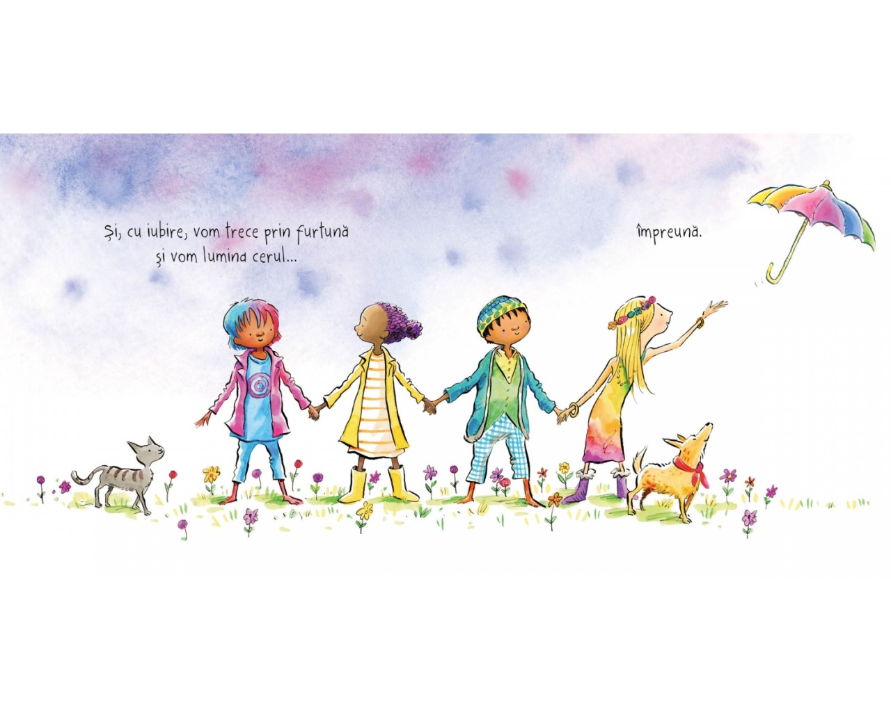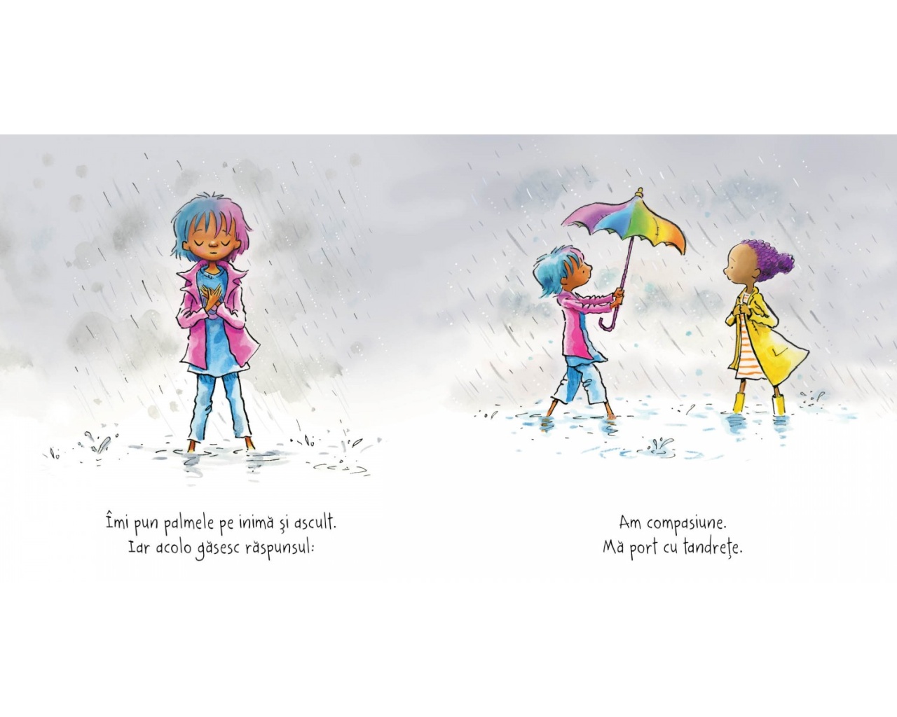 # Bestseller New York Times „Îmi pun palmele pe inimă și ascult. Și acolo găsesc răspunsul: am compasiune. Acționez cu tandrețe. Sunt iubire.” Susan Verde și Peter H. Reynolds își continuă colaborarea cu cea de-a patra carte din seria lor de bestseller. O sărbătoare a iubirii în toate formele sale, cartea “Sunt iubire” le cere cititorilor să privească înăuntru atunci când se simt furioși, temători sau triști. Atunci cand în noi se naște o furtună și cerul ni se întunecă, puterea transformatoare a iubirii lasă lumina să pătrundă din nou. Iubirea înseamnă să dăm dovadă de bunătate, să trăim cu recunoștință și să avem grijă de mințile și de trupurile noastre. Cartea se adresează tuturor copiilor cu vârsta peste 4 ani și explorează numeroase aspecte ale iubirii care pot ajuta pe cineva să treacă prin orice furtună; explică faptul că iubirea înseamnă alinare, efort, conexiune și a avea grijă de sine. Include posturi din yoga menite să deschidă inima, precum și o meditație ghidată. Iubirea este pretutindeni! Se află în noi și în jurul nostru și sunt atâtea căi prin care poate fi împărtășită și exprimată! Dar, uneori, în viață se întâmplă lucruri care ne fac să fim temători, triști sau neajutorați, iar capacitatea noastră de a găsi acea iubire se poate pierde. “Sunt Iubire” este o explorare a numeroaselor forme în care există iubirea și o afirmare a faptului că, odată ce ne ascultăm inimile și găsim iubirea din noi înșine, o putem împărtăși cu lumea, găsind conexiune și compasiune. Această carte vă provoacă la discuții, cu fiii și fiicele dumneavoastră, despre iubire în toate formele ei, despre faptul că nu suntem neajutorați, ci, dimpotrivă, avem puterea de a face lumea mai frumoasă atunci când suntem mânați de iubire. Despre autor Susan Verde este autoarea cărților „Sunt Yoga”, „Sunt Pace” și „Sunt Om”, ilustrate de Peter H. Reynolds. Este o instructoare certificată de mindfulness și yoga pentru copii și locuiește în East Hampton, New York. Peter H. Reynolds a realizat desene pentru numeroase cărți ilustrate de succes, premiate, inclusiv „Sunt Yoga”, „Sunt Pace” și „Sunt Om”. Este renumitul ilustrator din spatele celor mai vândute seriale Judy Moody și Stink, precum și multe alte cărți de imagini cele mai vândute și premiate, inclusiv The Dot și Ish. Locuiește în Dedham, Massachusetts., unde conduce îndrăgitul magazin Blue Bunny Books and Toys. Specificații Vârstă: 4+ ani Pagini: 40 Mărimi: 21 x 21 cm Copertă: Cartonată + supracopertă