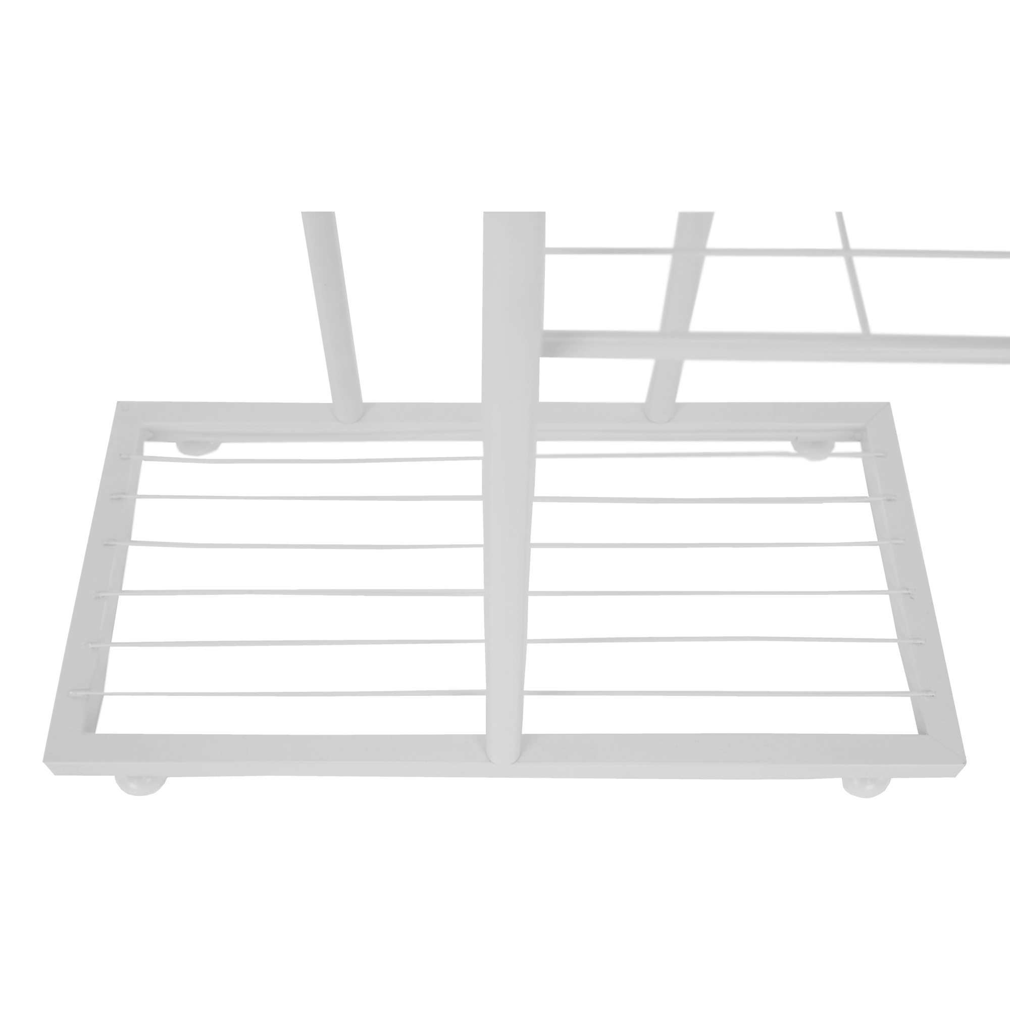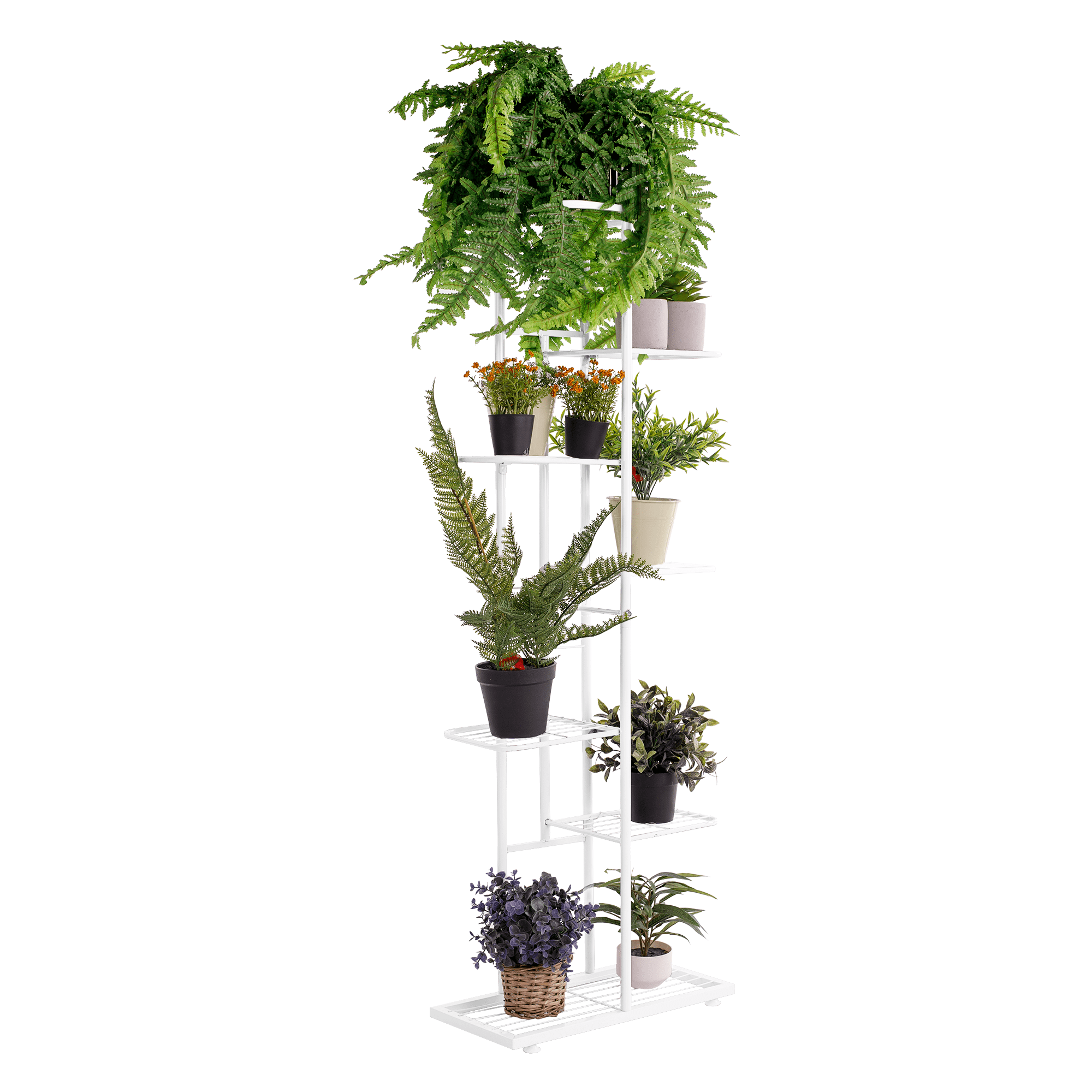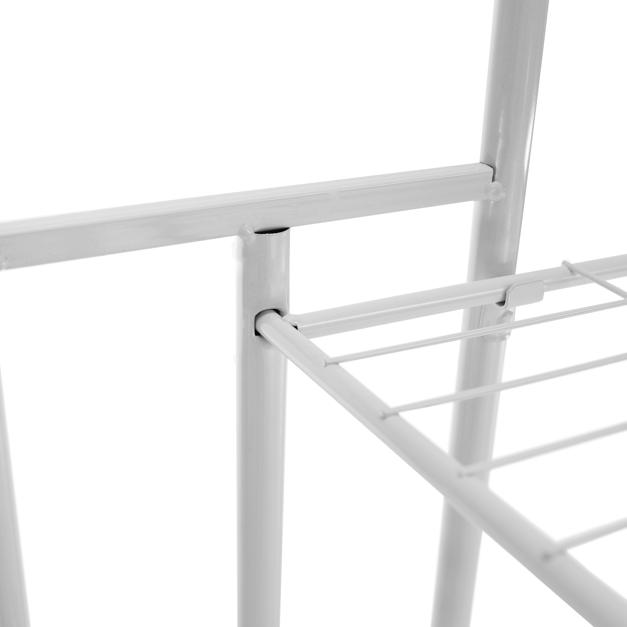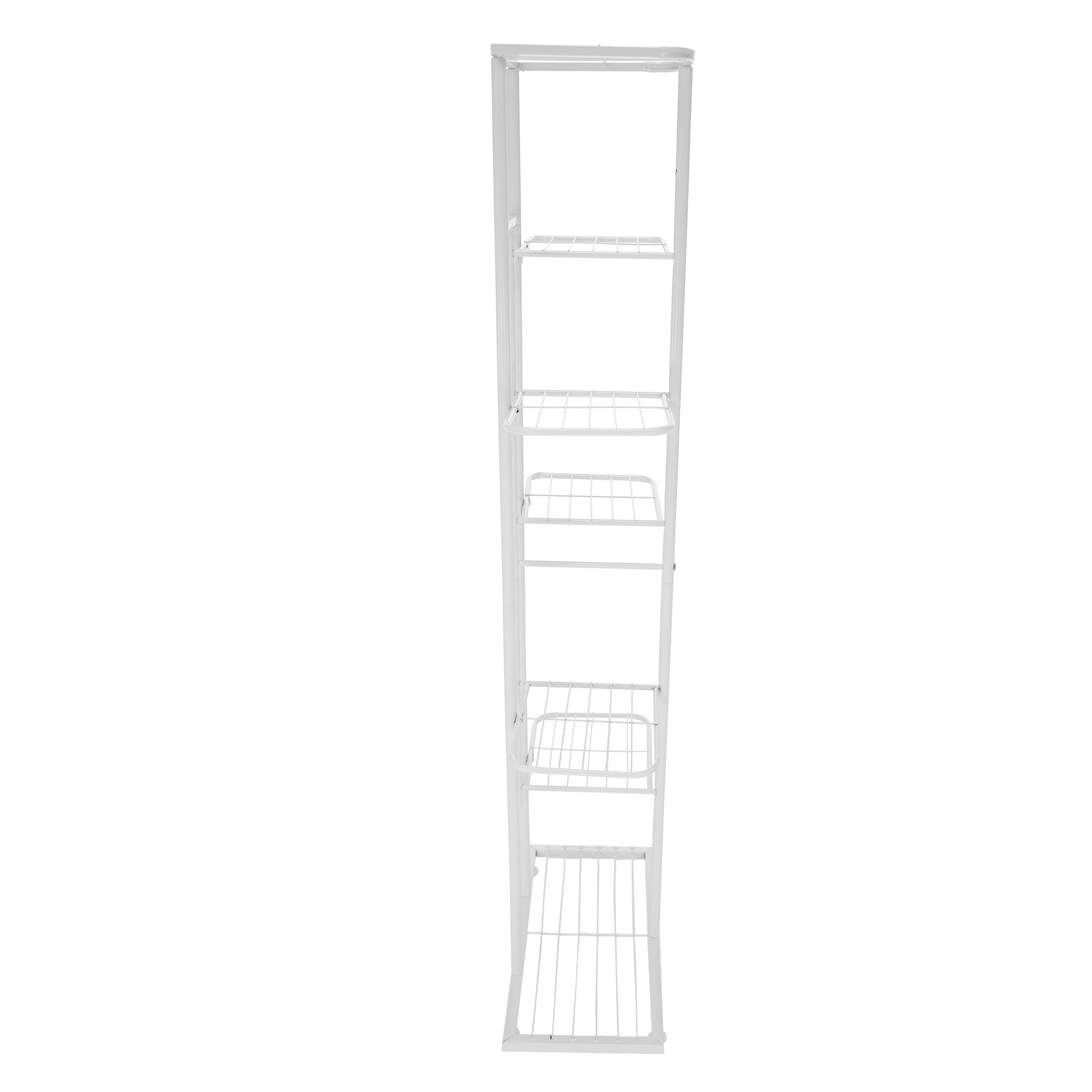 Material: metal Culoare: alb Dimensiuni (LxIxH): 43x22x126 cm Capacitate de incarcare pe raft: 2 kg Grosime bare: 1,6 cm Dimensiuni raft (Lxl): 21x22 cm Inaltimea raftului inferior: 23 cm Inaltimea celui de-al doilea raft: 31 cm Inaltimea celui de-al treilea raft: 42 cm Inaltimea raftului superior: 21 cm Constructie metalica 7 rafturi Stil modern Ca suport pentru plante in ghivece Picioare finisate, flexibile pentru a compensa denivelarile de suprafata