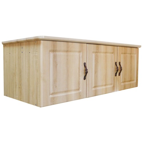 Suspendatul cu 3 usi Dynasty are carcasa fabricata din PAL melaminat Sonoma cu grosimea de 16 mm, iar usile sunt fabricate din MDF Sonoma cu grosimea de 18 mm. Usile sunt frezate pentru un aspect elegant, iar ornamentele de pe suspendat fabricate din MDF Sonoma cu grosimea de 25 mm desavarsesc acest aspect elegant. Manerele metalice antichizate contribuie si ele la aspectul deosebit al suspendatului. In interiorul suspendatului sunt 3 spatii de depozitare. Lungimea suspendatului este de 1350 mm fara ornamentul de sus si 1380 mm cu tot cu ornamentele de sus. Inaltimea suspendatului este de 475 mm, iar adancimea este de 590 mm. Suspendatul nu se poate prinde in perete, acesta fiind conceput pentru a fi prins intre dulapurile Dynasty cu 1, 2 sau 3 usi. Sub acesta se poate pune comoda cu 8 sertare Dynasty. CARACTERISTICI GENERALE Tip produs: Suspendat Tip usi: Cu balamale Numar usi: 3 Utilizat pentru: Dormitor Numar rafturi: 3 Stil: Clasic Culoare: Sonoma DETALII MATERIAL Material carcasa: PAL Material fronturi: MDF Finisaj: Laminat Material feronerie: Metal DIMENSIUNI Lungime: 138 cm Inaltime: 47,5 cm Adancime: 59 cm Nota: Schita de montaj nu se afla in interiorul coletului intre piesele de mobila. Schita de montaj o sa fie atasata pe spatele facturii.