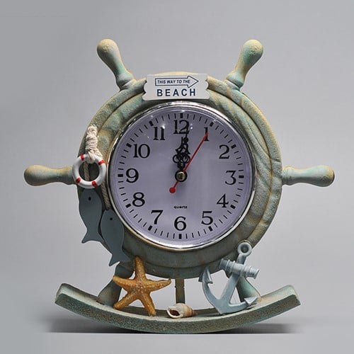 Suvenir ceas cu timona, beach Mediteranian Alimentat de baterie (nu este inclus), utilizați o baterie obișnuită din carbon în loc de o baterie cu sarcină ridicată. Tara de provenienta China Dimensiuni: 23 x 3.5 x 22 cm