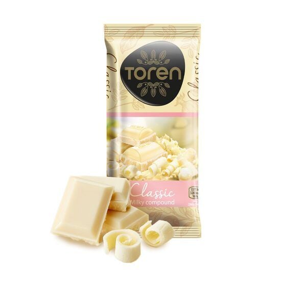 Classic White Milk Compound Tablet – ciocolată albă de calitateTabletă de ciocolată albă realizată din compus de lapte, cu textură fină și gust dulce și cremos. Ideală pentru consum direct, coacere sau prepararea deserturilor și a ciocolatei de casă. Formatul practic de tabletă permite porționarea ușoară și păstrează prospețimea produsului.Beneficii:Ciocolată albă cu compus de lapteTextură fină și gust cremosIdeală pentru deserturi, coacere sau consum directFormat tabletă, ușor de portionatRecomandare de păstrare: A se depozita într-un loc uscat și răcoros, ferit de lumina directă a soarelui și de surse de căldură.Mod ambalare 12/Bax