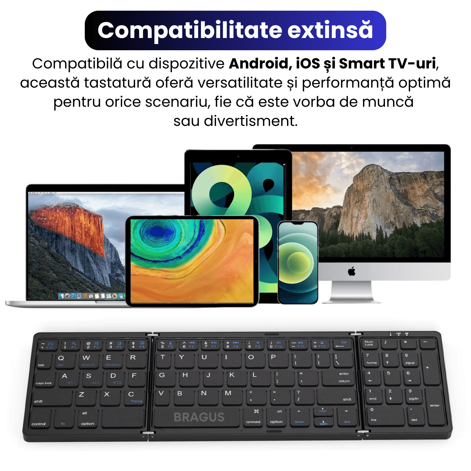 Descopera tastatura pliabila ultra-subtire, perfect echipata cu Bluetooth 5.0 si reincarcabila prin USB. Eleganta, ultra-portabila si compatibila cu Android, iOS si Smart TV, aceasta tastatura cu bloc numeric integrat iti ofera libertatea de a lucra oriunde, cu stil si confort. Iata de ce ar trebui achizitionat: Design ultra-subtire si pliabil – Usor de transportat, perfecta pentru calatorii sau pentru cei care lucreaza de la birou si acasa. Conectivitate Bluetooth 5.0 – Ofera o conexiune rapida si stabila, fara a fi nevoie de cabluri, pentru o experienta de tastare fara intreruperi. Compatibilitate universala – Functioneaza perfect cu Android, iOS si Smart TV, oferindu-ti flexibilitate in utilizare pe diverse dispozitive. Reincarcabila prin USB – Economiseste bani si resurse, fara a fi nevoie de baterii, doar prin conectare la un port USB. Bloc numeric integrat – Perfect pentru utilizatorii care au nevoie de tastarea rapida a numerelor, ideal pentru munca de birou si activitati financiare. Portabila si eficienta – Datorita dimensiunilor sale compacte, poate fi transportata usor in geanta sau rucsac, oferind confort in orice situatie. Cu un design inovativ pliabil in 3 sectiuni, aceasta tastatura compacta se pliaza rapid si usor, economisind spatiu si fiind ideala pentru transport. Fie ca o ascunzi in geanta, rucsac sau chiar in buzunar, o poti lua cu tine oriunde. Confortabila si eficienta, aceasta tastatura ofera o experienta de tastare excelenta, chiar si atunci cand esti pe drum sau intr-o locatie diferita. Designul sau elegant si practic te ajuta sa ramai productiv in orice situatie, iar portabilitatea ei face ca fiecare activitate sa devina mai usoara. Cu o distanta de operare de pana la 10 metri, aceasta tastatura iti ofera libertatea de a te deplasa fara griji, asigurand o conexiune stabila si rapida. Fie ca lucrezi intr-un birou mare sau ca preferi sa folosesti tastatura de la distanta, vei putea sa te concentrezi pe activitatile tale fara a fi limitat de cabluri. Aceasta caracteristica face tastatura perfecta pentru mediile de lucru dinamice, unde mobilitatea este esentiala. In plus, iti permite sa te simti liber in miscare, oferindu-ti o experienta de tastare confortabila si eficienta, chiar si atunci cand esti la distanta de dispozitivul tau. Tastele cu switch tip foarfeca sunt concepute pentru a oferi o experienta de tastare precisa si confortabila. Structura tip foarfeca asigura o actiune lina si eficienta, astfel incat fiecare apasare sa fie usoara si rapida. Aceste taste sunt construite pentru a rezista la utilizare intensa, avand o durabilitate de pana la 5 milioane de apasari, ceea ce le face ideale pentru utilizatorii care petrec multe ore tastand. Fie ca lucrezi, scrii sau joci, vei beneficia de o performanta constanta si de o tastare de inalta calitate pe termen lung. Indiferent de utilizare, aceste taste ofera fiabilitate si confort in fiecare zi. Tastatura este echipata cu o baterie reincarcabila integrata, oferind o autonomie generoasa care te va tine productiv pe parcursul intregii zile. Datorita cablului USB-C inclus, procesul de reincarcare devine rapid si eficient, astfel incat nu vei pierde mult timp asteptand ca tastatura sa fie gata de utilizare. Timpul de incarcare este de doar 2-3 ore, iar odata reincarcata, aceasta poate fi utilizata timp de 560 de ore, asigurandu-ti performanta continua si fara intreruperi. Fie ca esti in birou, acasa sau in miscare, aceasta tastatura iti ofera libertatea de a o folosi fara griji legate de baterie. Tastatura include un set complet de taste numerice, oferind o modalitate rapida si usoara de a introduce date. Aceste taste sunt perfecte pentru cei care lucreaza cu cifre sau fac calcule frecvent, fiind ideale atat pentru birou, cat si pentru uz personal. Cu un design ergonomic si functional, tastatura te ajuta sa fii mai productiv si sa economisesti timp, avand acces rapid la toate cifrele de care ai nevoie. Fie ca lucrezi la un proiect important sau te ocupi de gestionarea finantelor personale, tastele numerice fac tastarea mai eficienta si mai confortabila. Cu o compatibilitate extinsa, aceasta tastatura este ideala pentru utilizatorii care folosesc multiple dispozitive. Este compatibila cu dispozitive Android, iOS si Smart TV-uri, oferindu-ti libertatea de a o conecta la orice dispozitiv preferi, fara probleme de compatibilitate. Fie ca esti la birou si ai nevoie de o tastatura eficienta pentru munca sau ca te relaxezi si vrei sa navighezi pe internet sau sa vizionezi continut pe televizor, aceasta tastatura iti va oferi performanta optima in orice situatie. Datorita acestei versatilitati, poti avea o experienta fluida si rapida, indiferent de scenariul in care o folosesti. Tastatura se adapteaza perfect nevoilor tale, facand fiecare activitate mai usoara si mai placuta. Caracteristici : Material: ABS Mod de conectare: Bluetooth wireless 5.0 Distanta wireless: aproximativ 8-10 metri Numar de taste: 81 de taste Interfata de incarcare: Tip C Suport de sistem: compatibil cu OS X, iOS, Windows, Android si altele Tip baterie: Baterie litiu-ion de 140 mAh incorporata Timp de utilizare: 45 ore Timp de asteptare: 90 de zile Cumpara acum tastatura perfecta pentru mobilitate si performanta! Cu Bluetooth 5.0, autonomie de 45 ore si incarcare rapida prin USB-C, aceasta tastatura este compatibila cu multiple sisteme de operare, oferindu-ti confort si versatilitate in orice situatie. Nu rata ocazia de a o avea!