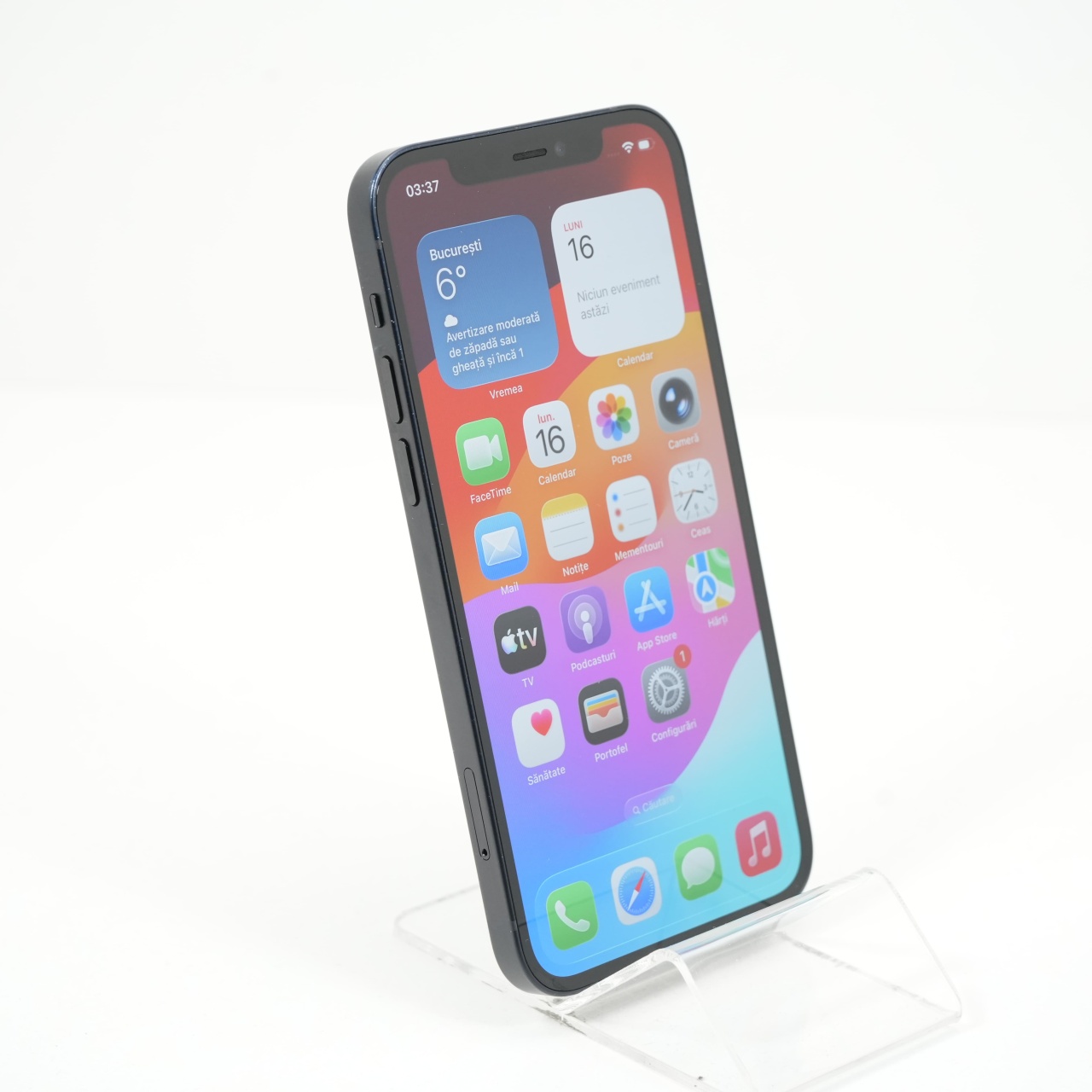 Ecran: 6.1 Procesor: Apple A14 Bionic Memorie RAM: 4GB Memorie interna: 128GB Camera foto: Principala 12 MPx, Frontala 12 MPx Stare retea: Liber de retea