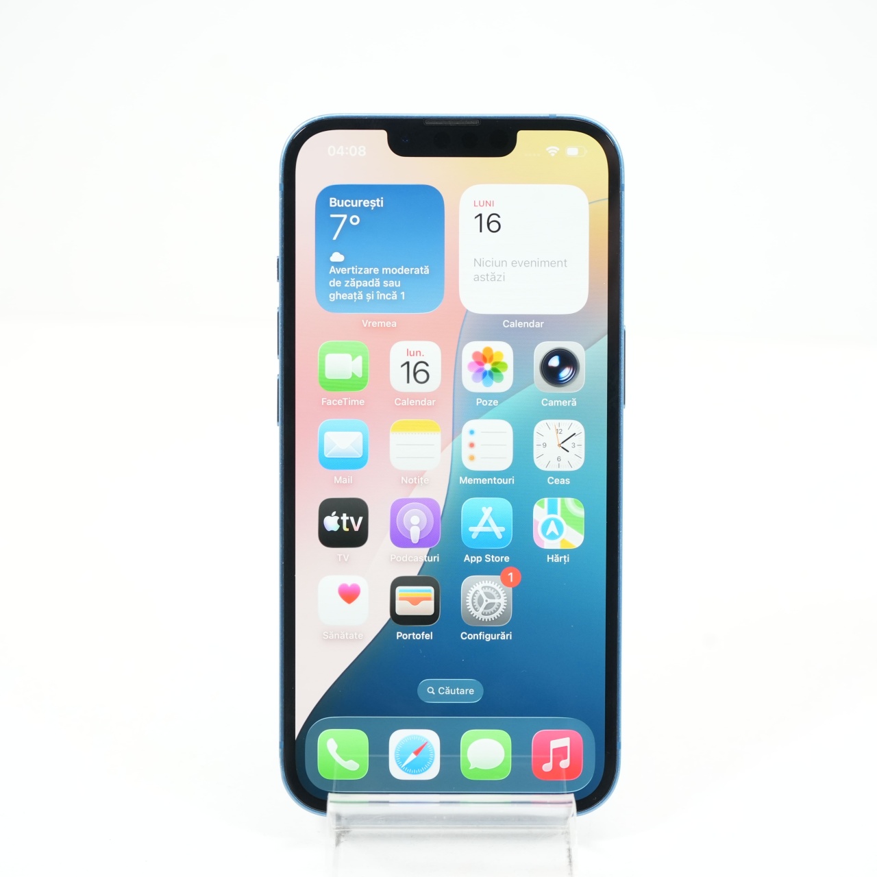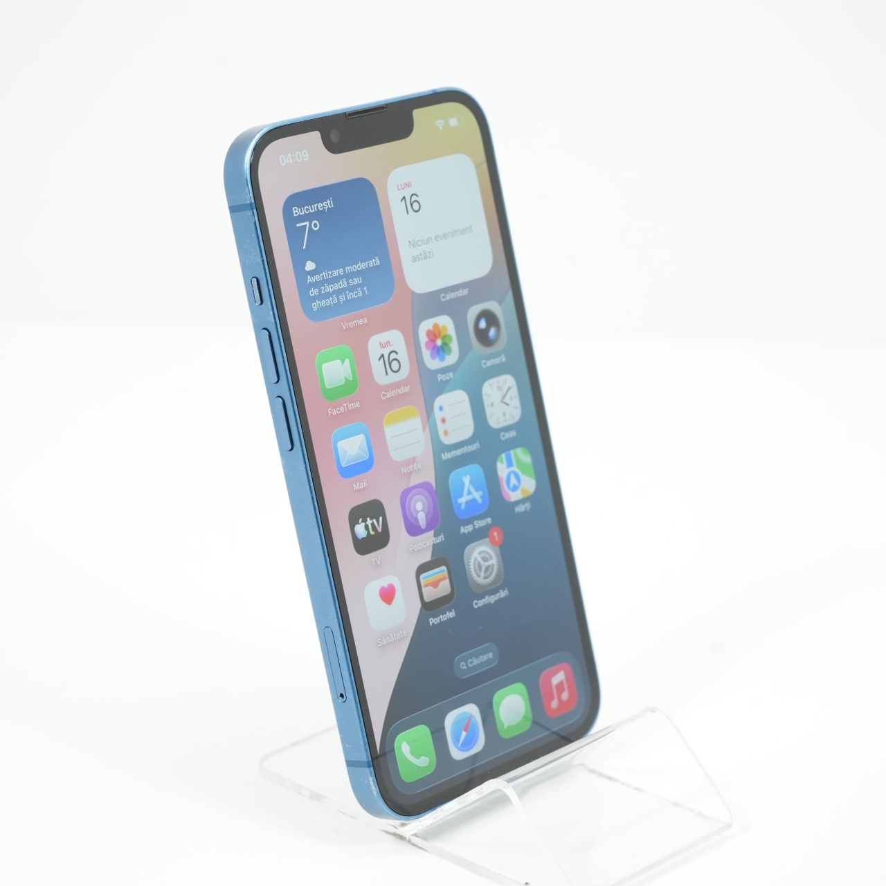 Ecran: 6.1 Procesor: Apple A15 Bionic Memorie RAM: 4 GB Memorie interna: 128GB Camera Foto: Principala 12 MPx, Frontala 12 MPx Stare retea: Liber de rețea