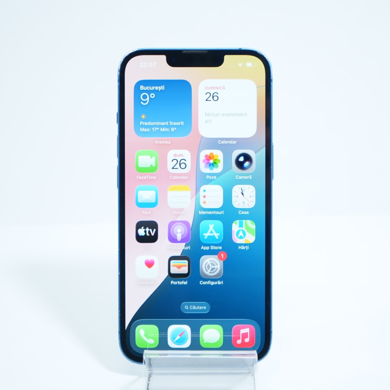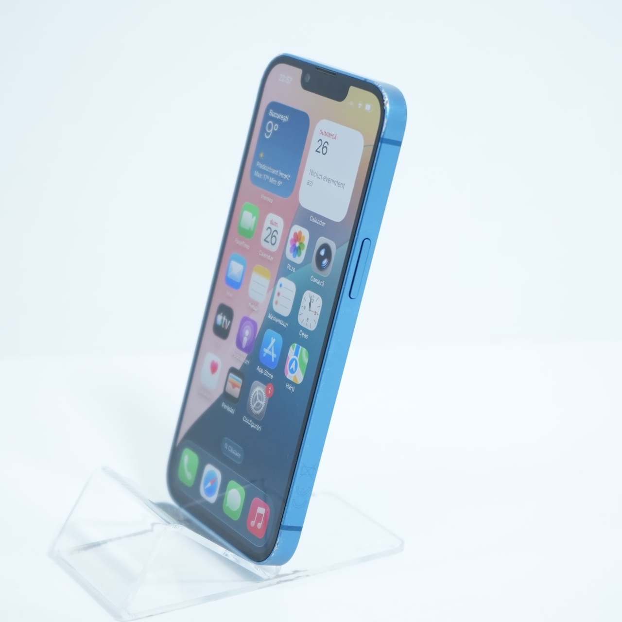 Ecran: 6.1 Procesor: Apple A15 Bionic Memorie RAM: 4GB Memorie interna: 128GB Camera Foto: Principala 12 MPx, Frontala 12 MPx Stare retea: Liber de rețea