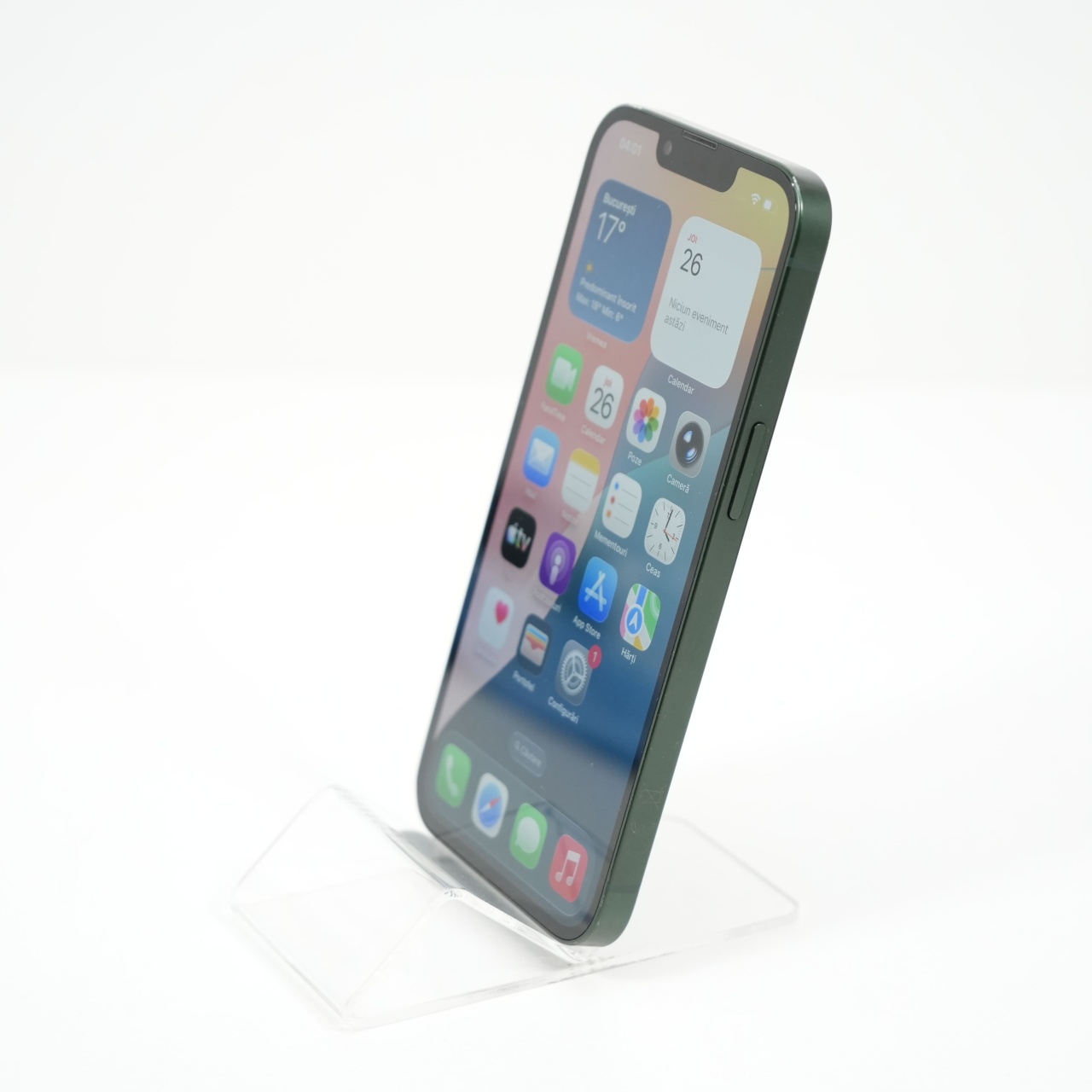 Ecran: 6.1 Procesor: Apple A15 Bionic Memorie RAM: 4 GB Memorie interna: 128GB Camera Foto: Principala 12 MPx, Frontala 12 MPx Stare retea: Liber de rețea
