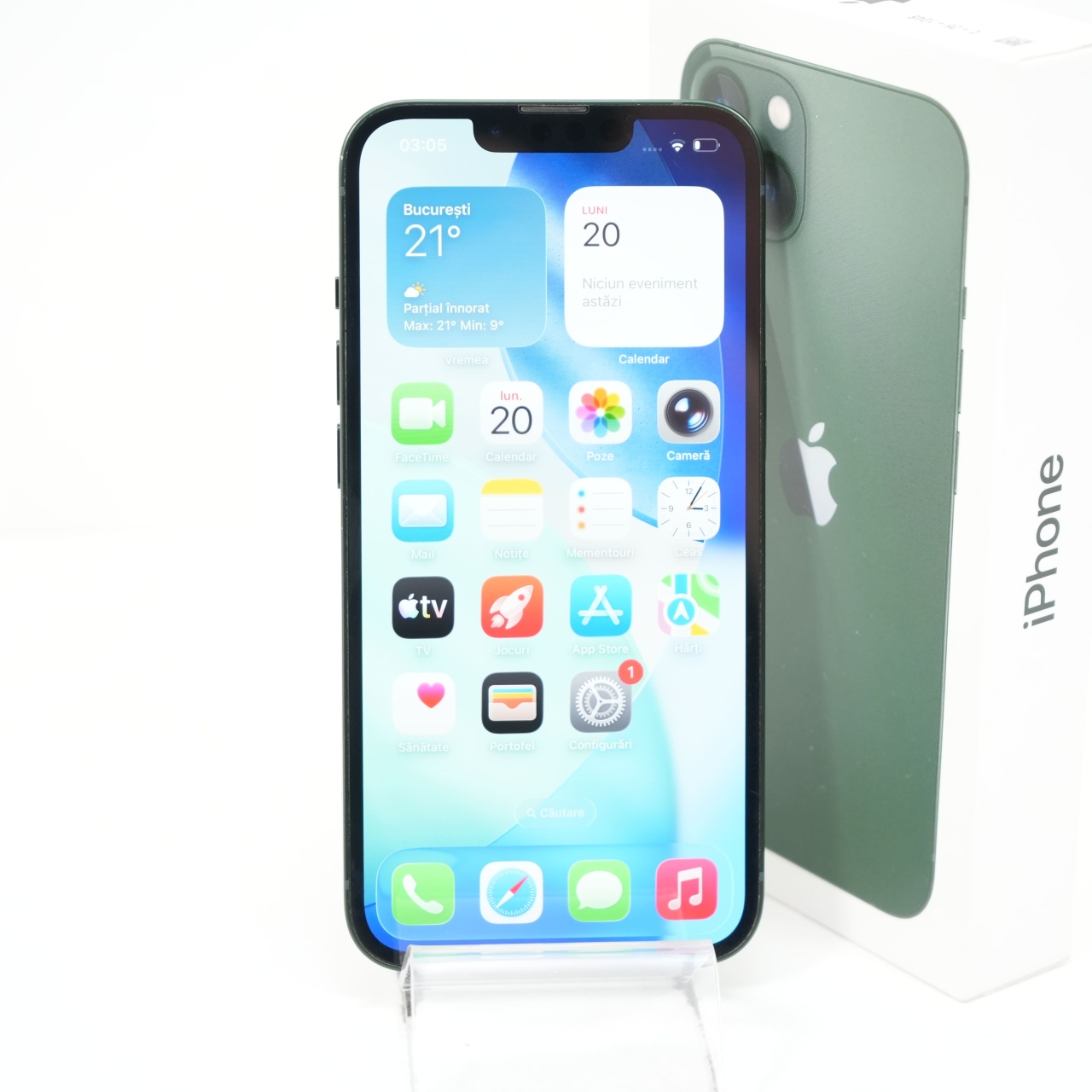 Ecran: 6.1 Procesor: Apple A15 Bionic Memorie RAM: 4GB Memorie interna: 128GB Camera Foto: Principala 12 MPx, Frontala 12 MPx Stare retea: Liber de rețea
