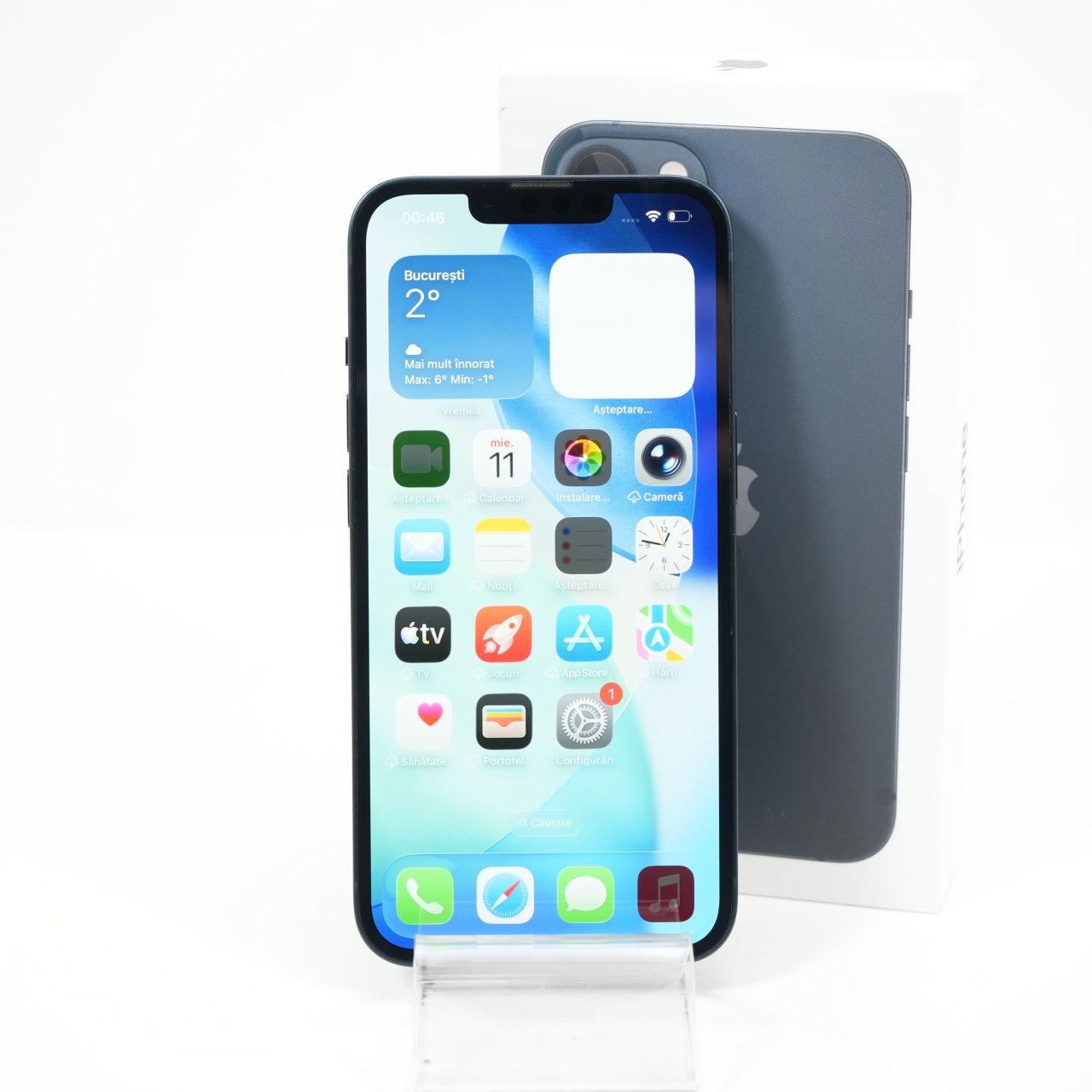 Ecran: 6.1 Procesor: Apple A15 Bionic Memorie RAM: 4 GB Memorie interna: 128GB Camera Foto: Principala 12 MPx, Frontala 12 MPx Stare retea: Liber de rețea