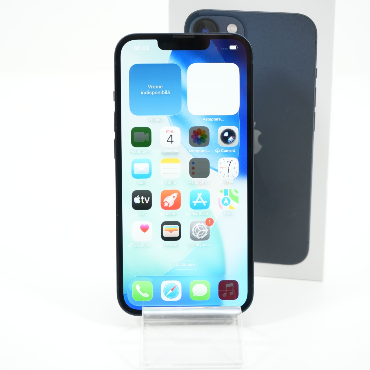 Ecran: 6.1 Procesor: Apple A15 Bionic Memorie RAM: 4 GB Memorie interna: 128GB Camera Foto: Principala 12 MPx, Frontala 12 MPx Stare retea: Liber de rețea