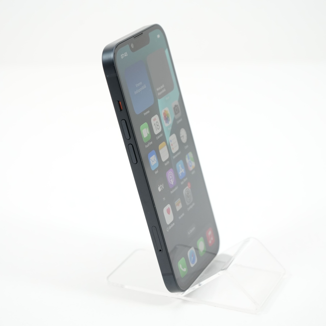 Ecran: 6.1 Procesor: Apple A15 Bionic Memorie RAM: 4 GB Memorie interna: 128GB Camera Foto: Principala 12 MPx, Frontala 12 MPx Stare retea: Liber de rețea
