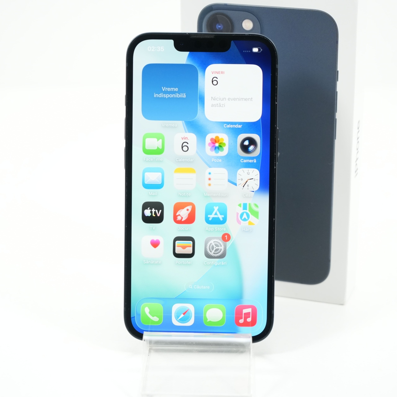 Ecran: 6.1 Procesor: Apple A15 Bionic Memorie RAM: 4 GB Memorie interna: 128GB Camera Foto: Principala 12 MPx, Frontala 12 MPx Stare retea: Liber de rețea