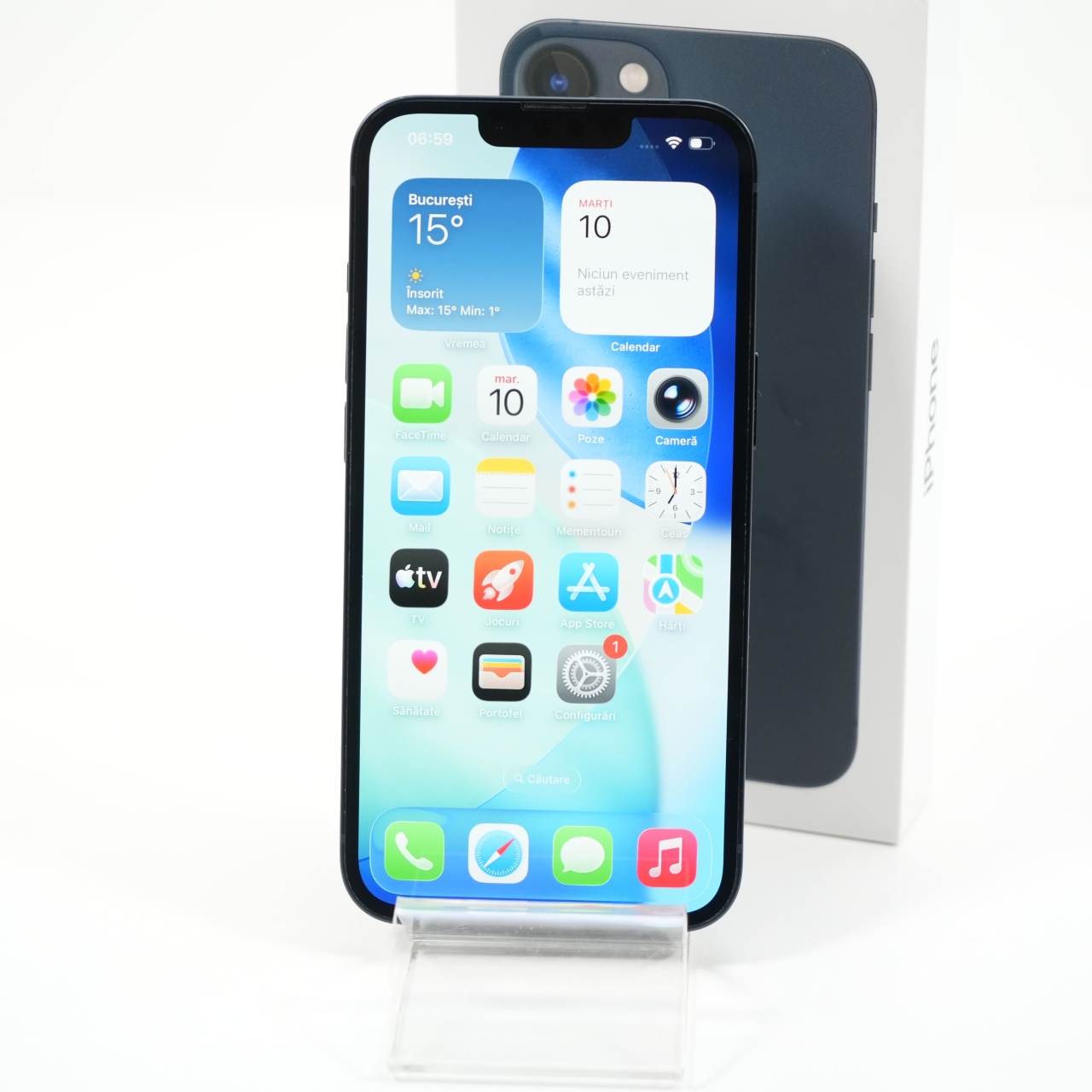 Ecran: 6.1 Procesor: Apple A15 Bionic Memorie RAM: 4 GB Memorie interna: 128GB Camera Foto: Principala 12 MPx, Frontala 12 MPx Stare retea: Liber de rețea